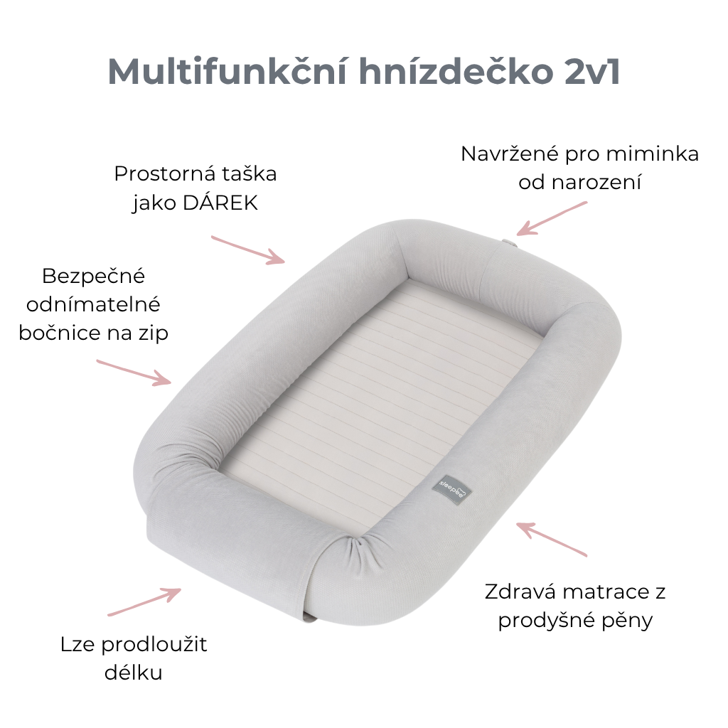 Multifunkční hnízdečko pro miminko s odnímatelnými boky 2 v 1 Sleepee Grey