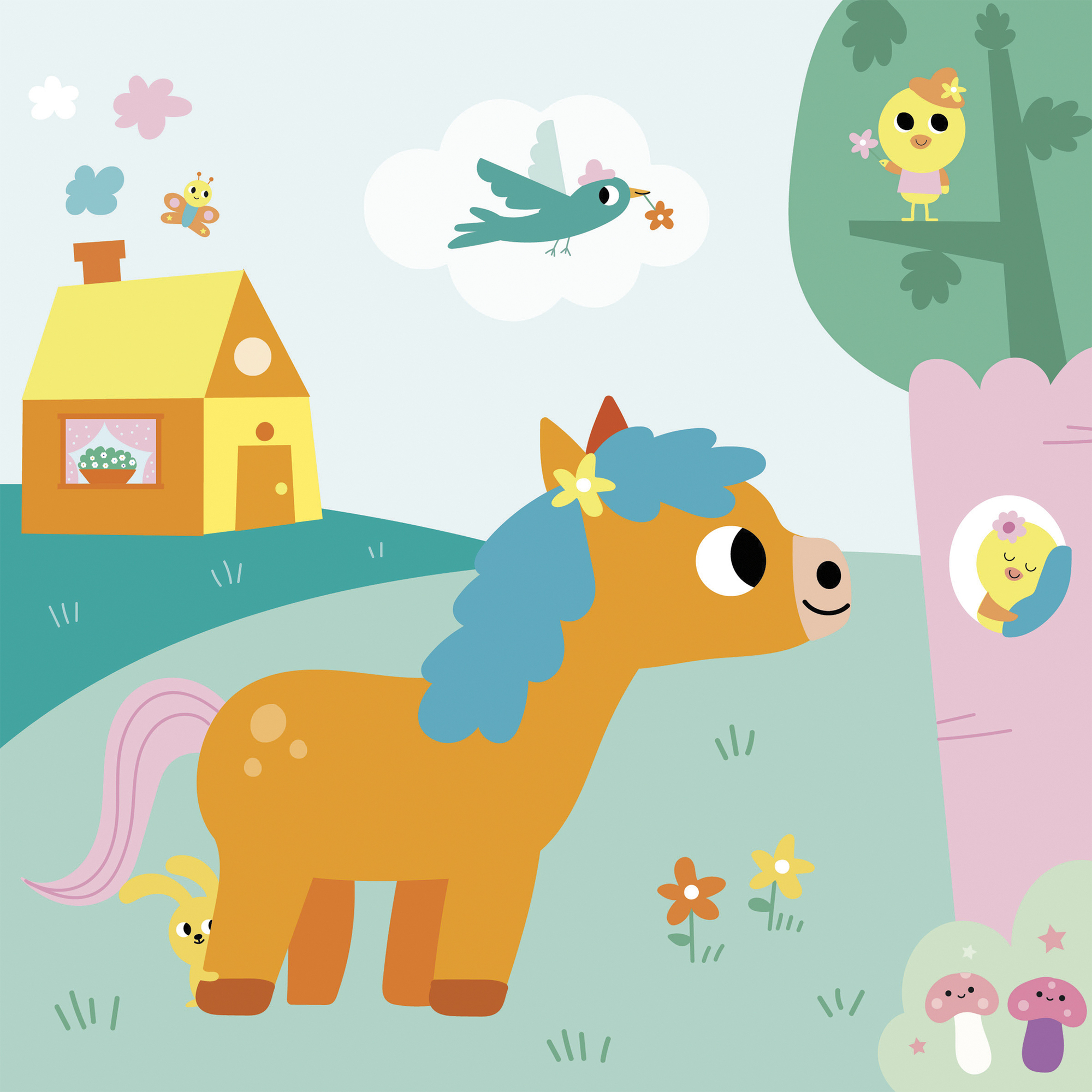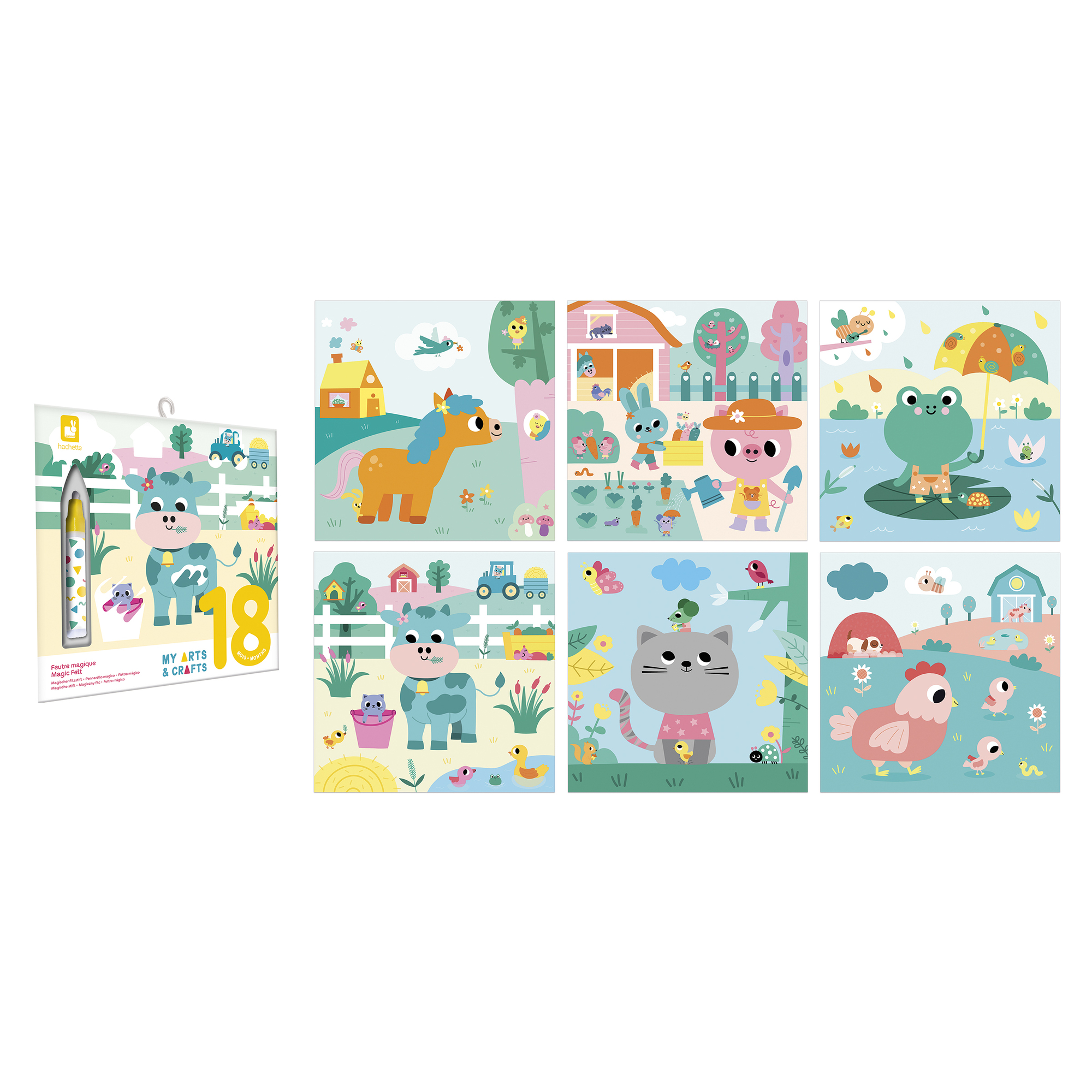 Táto sada na tvorenie zahŕňa vyfarbovanie obrázkov s farmárskou tematikou vodným perom. Obsahuje 3 obojstranné tabule, napr. 6 scén, ako aj vodné pero a leták s pokynmi a vzormi. Obrázky sú farebné s bielymi plochami. Farby sa objavia vo vode a pri schnutí blednú. Umožňuje deťom začať odznova! Táto aktivita pomáha rozvíjať jemnú motoriku a trpezlivosť. Trvá približne 20 minút (kým obrázky zaschnú a budú opäť použiteľné) a je ideálna pre deti vo veku 18 mesiacov a viac.