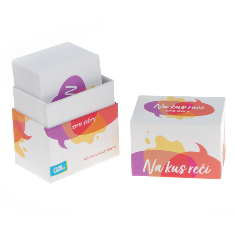 Ako veľmi máte prečítaného svojho partnera a koľko sa toho skrýva medzi riadkami? Karty Na kus reči vám budú inšpiráciou pre vaše partnerské rozhovory. Užite si príjemný čas so svojou drahou polovičkou, porozprávajte sa a zistite o sebe niečo nové. Vďaka tejto hre môžete otvoriť témy, ktoré vás zblížia zase o niečo viac. Hra obsahuje: 89 kariet s otázkami, 10 prázdnych kariet pre vlastné otázky, pravidlá v slovenčine