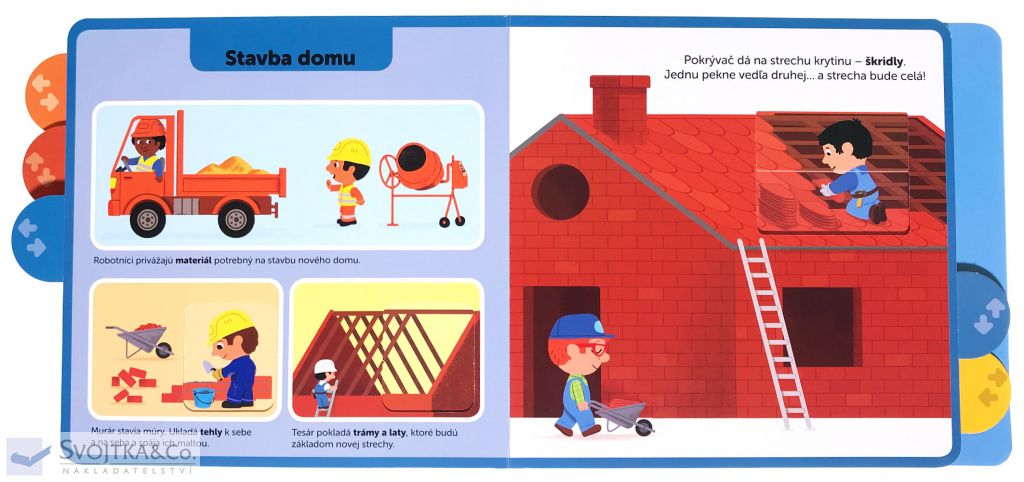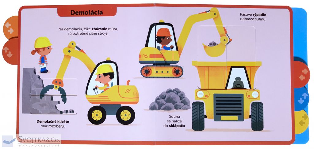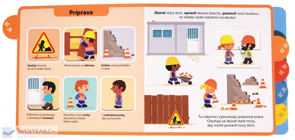 Tu na tom pozemku sa čosi chystá... Objavili sa tu zvláštne značky, všade behajú robotníci so špeciálnymi prilbami. Čo sa deje? Bude sa stavať! Zbúrať starý dom, opraviť deravú strechu, postaviť novú budovu... To všetko človek vie. Chceš zistiť, ako to prebieha? Otvor toto leporelo a rozpohybuj obrázky! Zoznám sa s rôznymi typmi veľkých stavebných strojov a zisti, čo všetko treba urobiť, než je budova úplne dokončená. Ideálne prvé čítanie pre malých staviteľov a staviteľky!