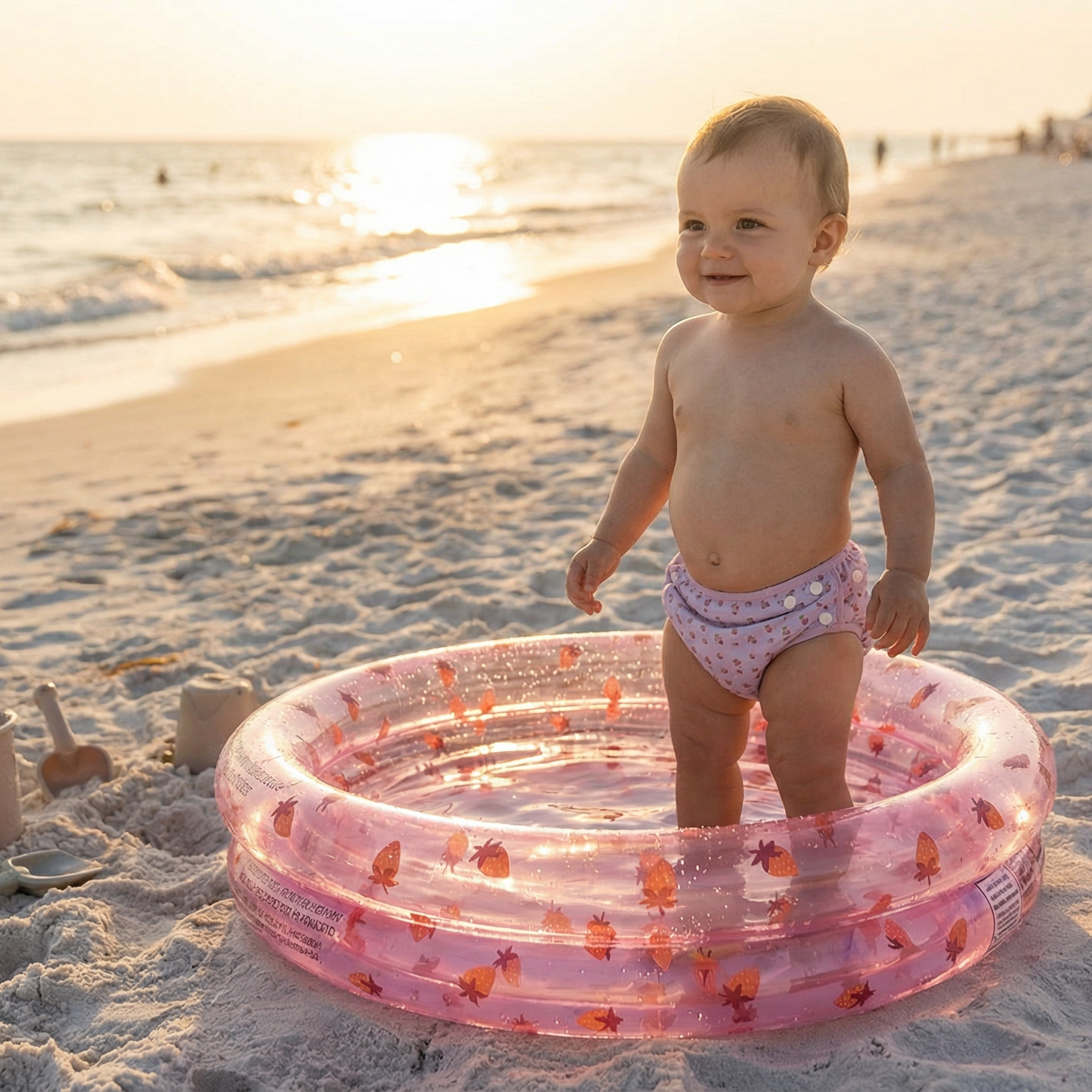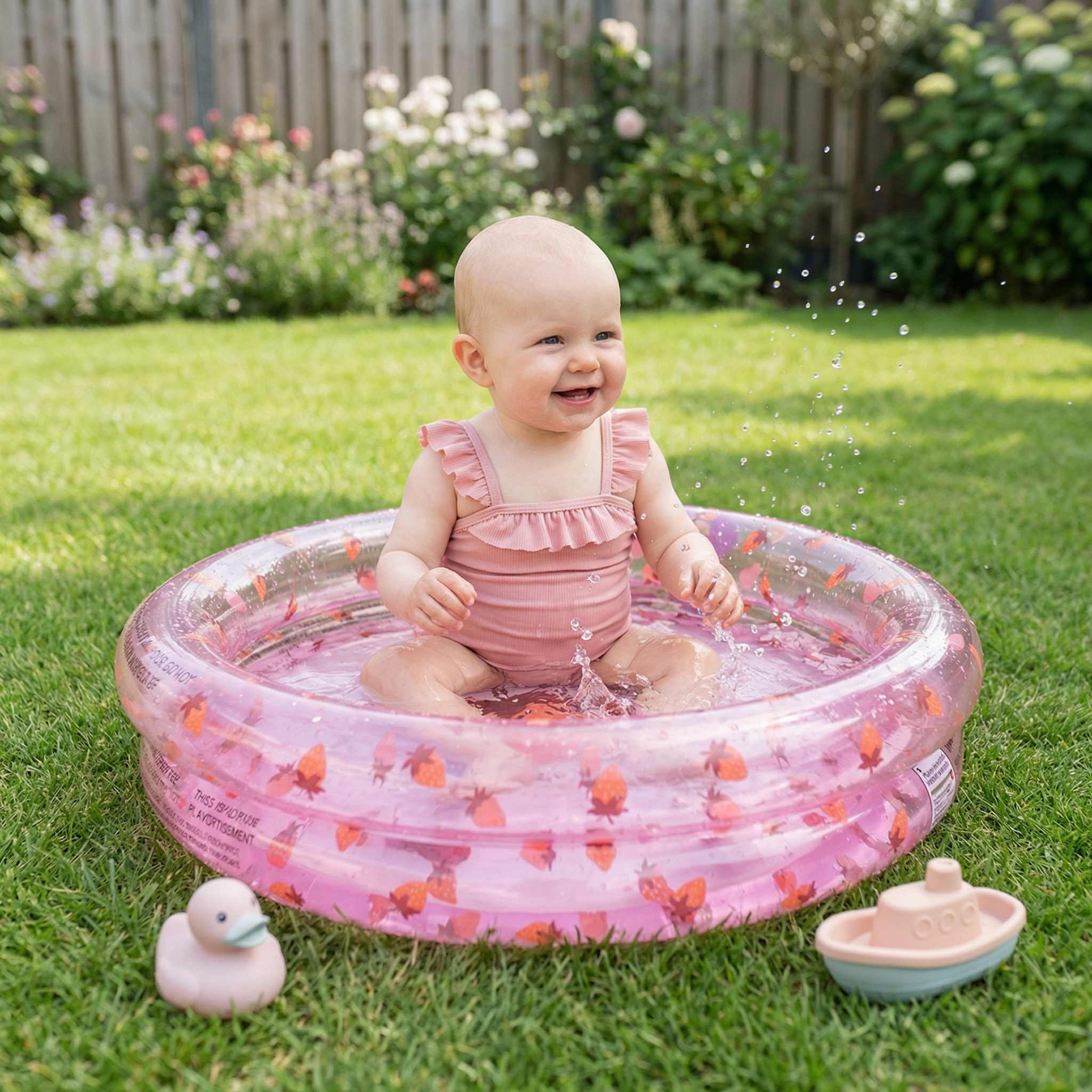 Nafukovací bazén pro děti Strawberry 60 cm Malý dětský bazének na léto: osvěžení na zahradu, terasu i balkonNafukovací bazén pro děti Strawberry od značky Swim Essentials je kompaktní dětský bazének o průměru 60 cm, ideální na první letní cákání pro nejmenší. Díky malé velikosti se hodí i do menších prostor – skvělý jako nafukovací bazének na balkon, terasu nebo na zahradu.Bazének má 2 samostatné nafukovací komory, které pomáhají udržet stabilní tvar a pohodlí při sezení. Při naplnění pojme přibližně 15 litrů vody, takže je připravený na rychlé osvěžení bez zbytečného plýtvání vodou. Veselý jahodový design Strawberry dodá letním dnům hravou atmosféru a krásně vynikne i na prázdninových fotkách.Proč si vybrat tento dětský bazének První bazének pro nejmenší – kompaktní rozměr a nízké stěny Malý nafukovací bazének vhodný i do menších prostor 2 vzduchové komory pro lepší stabilitu Rychlé nafouknutí a vyfouknutí – ideální na cestování Úsporný objem – cca 15 l vody pro příjemné ochlazeníTechnické parametry Značka: Swim Essentials Typ: nafukovací dětský bazén / bazének pro nejmenší Průměr: 60 cm Konstrukce: 2 nafukovací komory Objem: cca 15 l Materiál: PVC Design: StrawberryJak bazének používat prakticky Rozlož bazének na rovný povrch (ideálně na měkkou podložku nebo deku). Nafoukni obě komory a napusť přiměřené množství vody podle věku dítěte. Po hře vodu vylij, bazének opláchni a důkladně usuš – prodloužíš jeho životnost. Skladuj mimo přímé slunce a zdroje tepla, aby materiál zbytečně nestárnul.Důležité bezpečnostní upozornění Dítě používá bazének vždy jen pod nepřetržitým dohledem dospělé osoby. Nepokládej bazének na drsný povrch (beton, štěrk) bez podložky – snížíš riziko poškození.