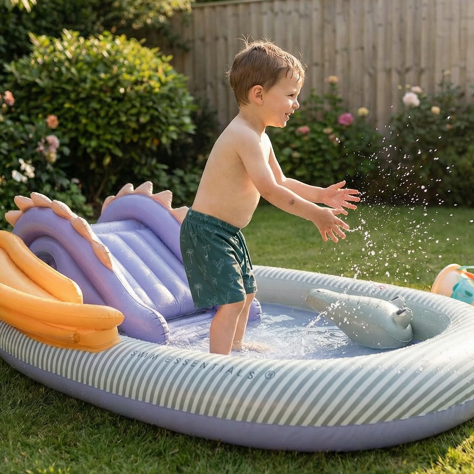 Nafukovací bazén se skluzavkou Dino 210 cm Letní dinosauří vodní hřiště: nafukovací bazén se skluzavkou pro aktivní zábavuNafukovací bazén se skluzavkou Dino od značky Swim Essentials promění zahradu v malé vodní hřiště. Díky velkorysému rozměru (cca 210 × 150 cm) nabídne prostor pro cákání, hry i první sklouznutí do osvěžující vody – ideální na horké letní dny doma i na chalupě.Bazén je navržen tak, aby děti bavilo nejen koupání, ale i pohyb – součástí je malá skluzavka, která zpříjemní hru za slunečného počasí. Odolné PVC je připravené na běžné letní používání a po sezóně bazén jednoduše vyfoukneš a uložíš.Proč si vybrat tento dětský bazén se skluzavkou Vodní hřiště na zahradě – bazén + skluzavka v jednom Velká plocha na hraní (cca 210 × 150 cm) – vhodné i pro sourozence Letní dino design, který děti hned zaujme Rychlé nafouknutí a skladování – praktické i na dovolenou Doporučený věk: od 3 letDůležité bezpečnostní upozornění Dítě používá bazén vždy pouze pod nepřetržitým dohledem dospělé osoby. Vhodné jen do mělké vody; nepoužívej v blízkosti schodů, svahů ani tvrdých překážek. Na drsný povrch (beton, štěrk) vždy použij ochrannou podložku.
