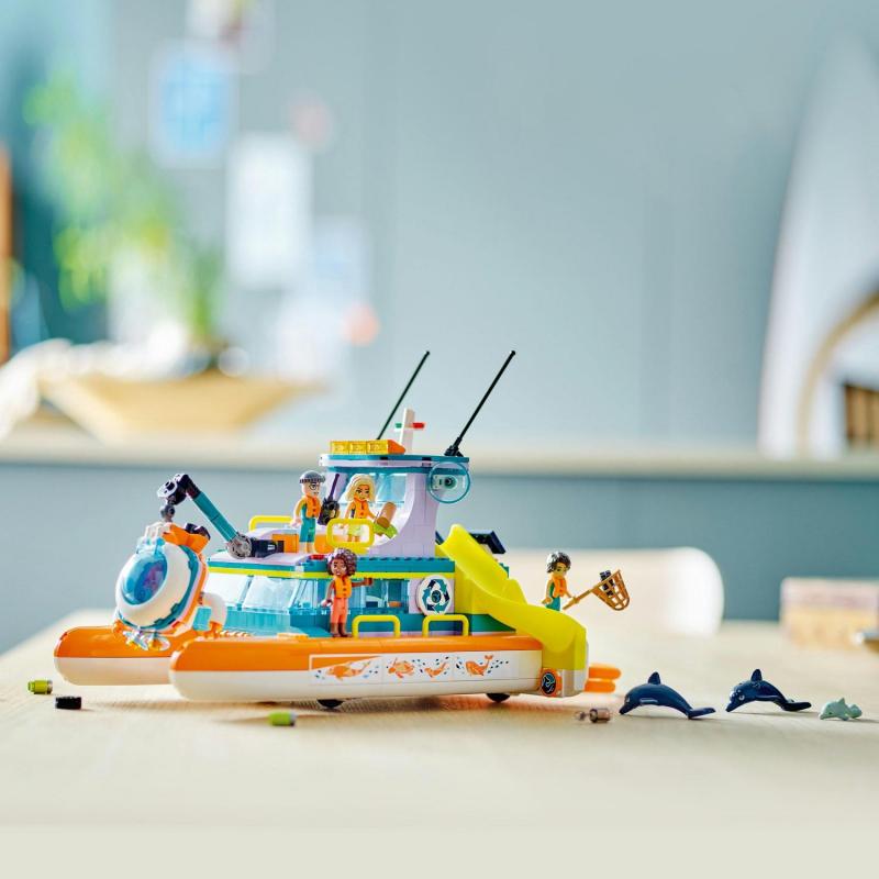 Milovníci prírody od 7 rokov sa s touto prepracovanou stavebnicou LEGO® Friends Námorná záchranná loď naučia množstvo informácií o živote pod morskou hladinou. Stavebnica obsahuje zostaviteľný katamarán, ktorý slúži aj ako laboratórium a takisto malú hračkársku ponorku. Deti si môžu prehrať príbehy o námornej záchrannej službe a prevrátením člna nad odpadkami ich zachytia do sietí, ktoré sú pripravené na ich recykláciu. A Nova a Aliya si mysleli, že toho nemajú veľa spoločného, no počas plneniatejto misie sa postupne zbližujú. Rozprúďte zábavu Deti sa môžu tešiť na jednoduché a intuitívne stavanie vďaka aplikácii LEGO Builder, ktorá deťom umožňuje modely si približovať, otáčať v 3D prostredí, ukladať si ich a sledovať postup stavania. Skombinujte ju s ostatnými stavebnicami zo série LEGO Friends, 41736 a 41752 (predávané samostatne) pre ešte viac záchranárskych dobrodružstiev v oceáne. Spoznajte novú generáciu mestečka Heartlake Inšpirujte deti k rozvíjaniu záľub pri objavovaní nového sveta LEGO Friends s partiou rôznorodých postáv.