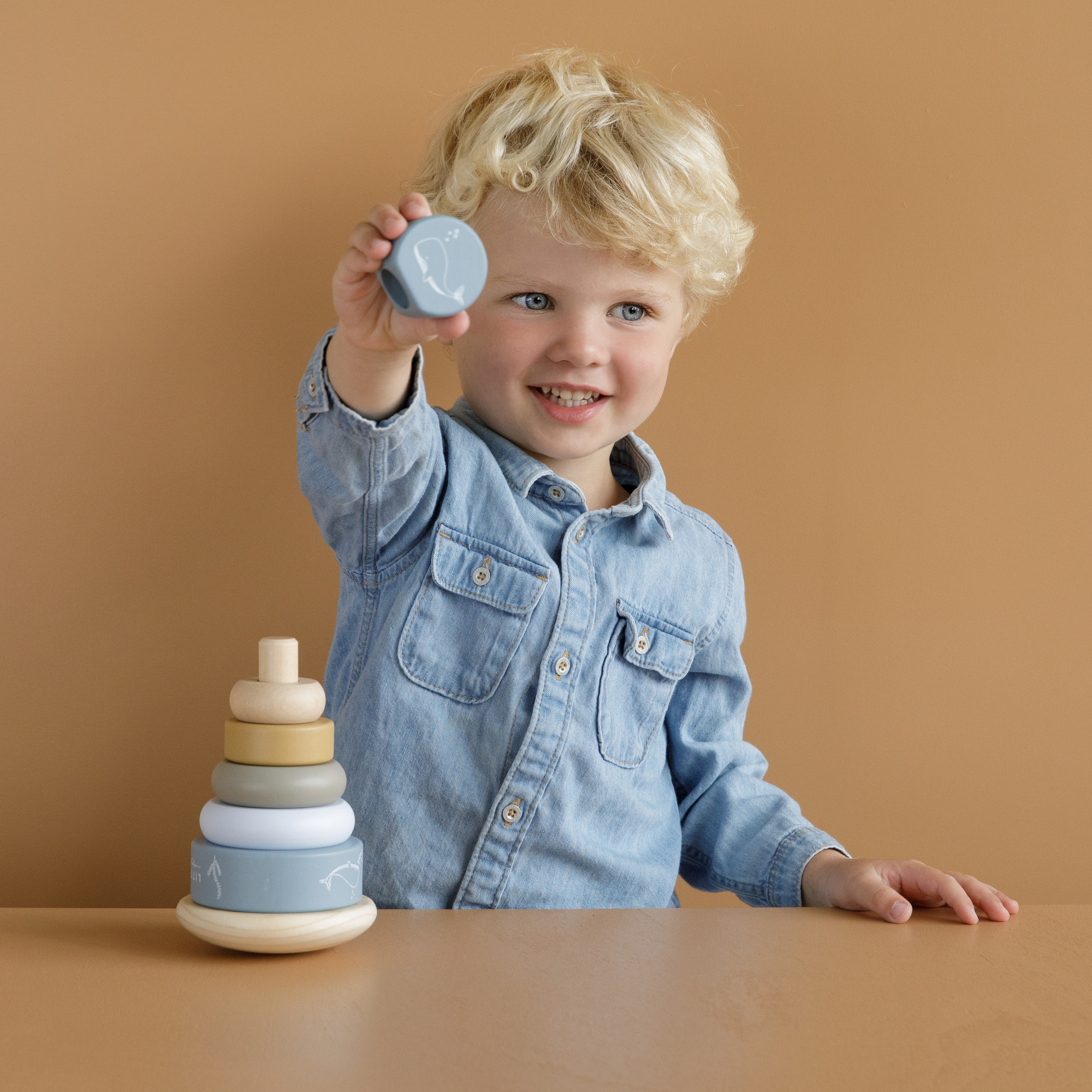 Hravé dřevěné nasazovací kroužky pro děti jsou navrženy tak, aby rozvíjely jejich koordinaci rukou a očí zábavnou a praktickou hrou. Děti se snaží umístit dřevěné kroužky ve správném pořadí a vytvořit z nich pyramidu. To je docela výzva, protože pyramida padá sem a tam!