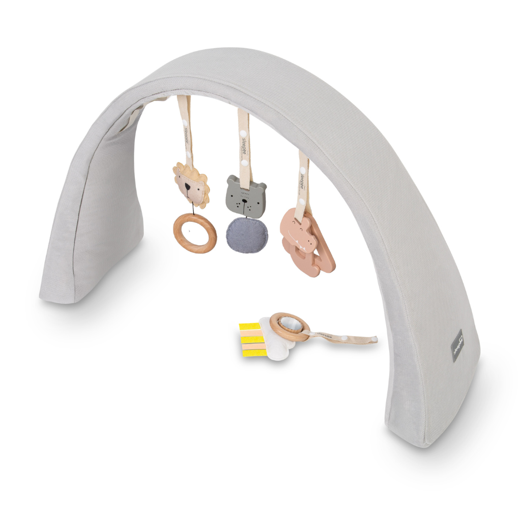 Nastavitelná hrazdička s hračkami Sleepee obsahuje čtyři barevné závěsné hračky, které rozvíjejí smysly miminka. Hrazdičku můžete využít jako součást hnízdečka i samostatně na hrací dece, podlaze nebo gauči. Doporučujeme jako první hračku pro miminka, kterou si brzy zamiluje.