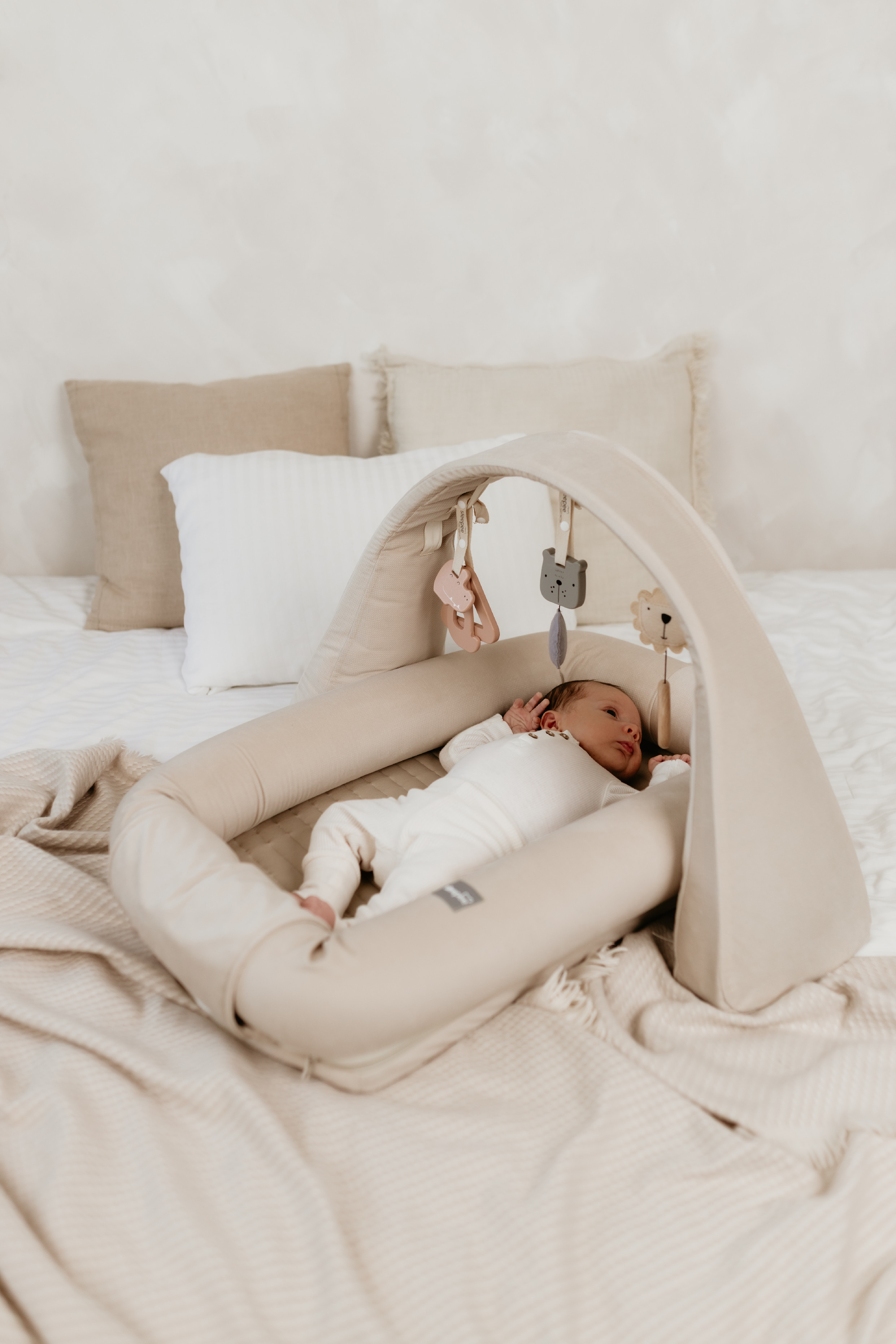 Nastavitelná hrazdička s hračkami Sleepee obsahuje čtyři barevné závěsné hračky, které rozvíjejí smysly miminka. Hrazdičku můžete využít jako součást hnízdečka i samostatně na hrací dece, podlaze nebo gauči. Doporučujeme jako první hračku pro miminka, kterou si brzy zamiluje.