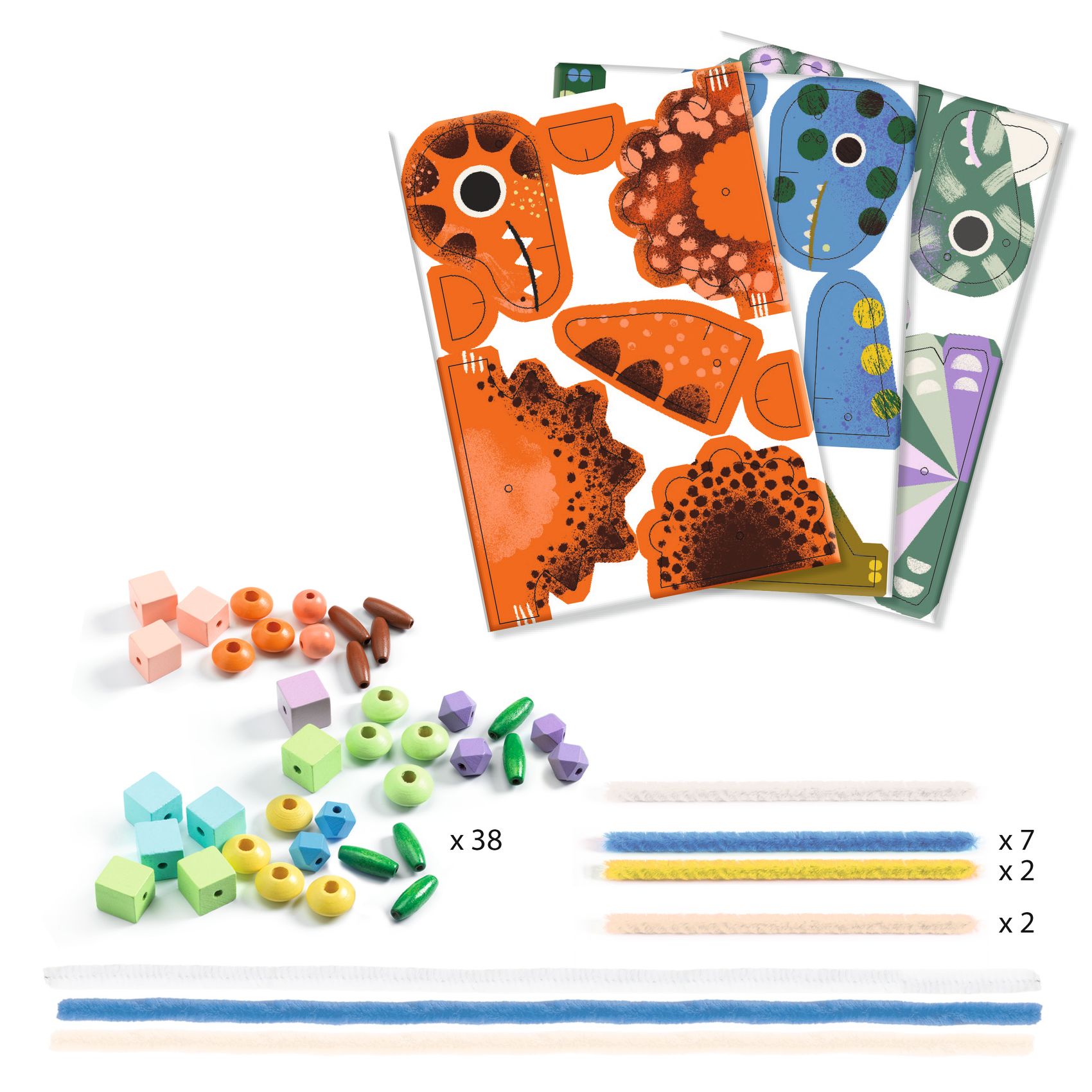 Navlékání Dinosauři Vytvoř si vlastní dinosaury: navlékej dřevěné korálky a kartonové dílky na chlup...zobrazit více