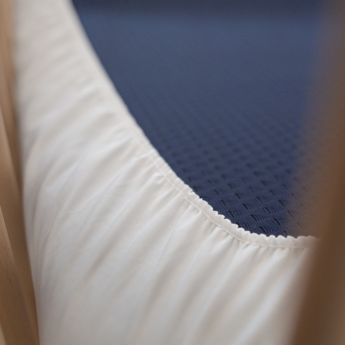 Prostěradlo je vyrobeno z přírodního vlákna Tencel, které je mimořádně jemné, šetrné k pokožce a dokáže regulovat tělesnou teplotu. Díky schopnosti rychle absorbovat a uvolňovat vlhkost pomáhá udržovat dítě v suchu a předchází pocení či podráždění pokožky. Vrchní vrstva prostěradla je opatřena tenkou, elastickou polyuretanovou membránou (PU), která zajišťuje spolehlivou voděodolnost a chrání matraci před prosakováním, skvrnami, prachem i roztoči. Napínací guma po obvodu umožňuje snadné natažení na matraci.