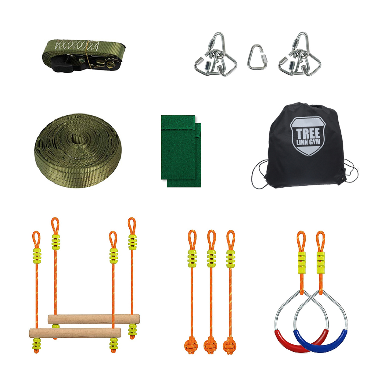 Buďte silní a obratní ako ninjovia, prekonajte ich výcvikovú dráhu! Základom dráhy je odolný nylonový pás napnutý medzi dvoma stromami pomocou robustnej kovovej račne. Na páse pritom môže byť pomocou karabín zavesený rad rôznych prekážok, ktoré je možné individuálne kombinovať, a dosiahnuť tak rôzne obtiažnosti. Možno ho však využiť aj samostatne pre tzv. „slackline“. Vďaka praktickej taške z odolného umelého vlákna môže byť dráha ľahko zbalená a pripravená Vás sprevádzať pri všetkých potulkách a dobrodružstvách v prírode. Súčasťou balenia sú: taška, pás s 9 úchytmi a 9 karabínami na uchytenie prekážok, 1 upínací pás s račňou, 2 chrániče stromov, 2 prekážkové hrazdičky, 2 prekážkové kruhy a 3 prekážkové lanové úchyty Hlavné vlastnosti:nosnosť dráhy 180 kg3 rôzne druhy prekážokvariabilný systém zaveseniaje možné využiť i pre slacklinepraktické balenie