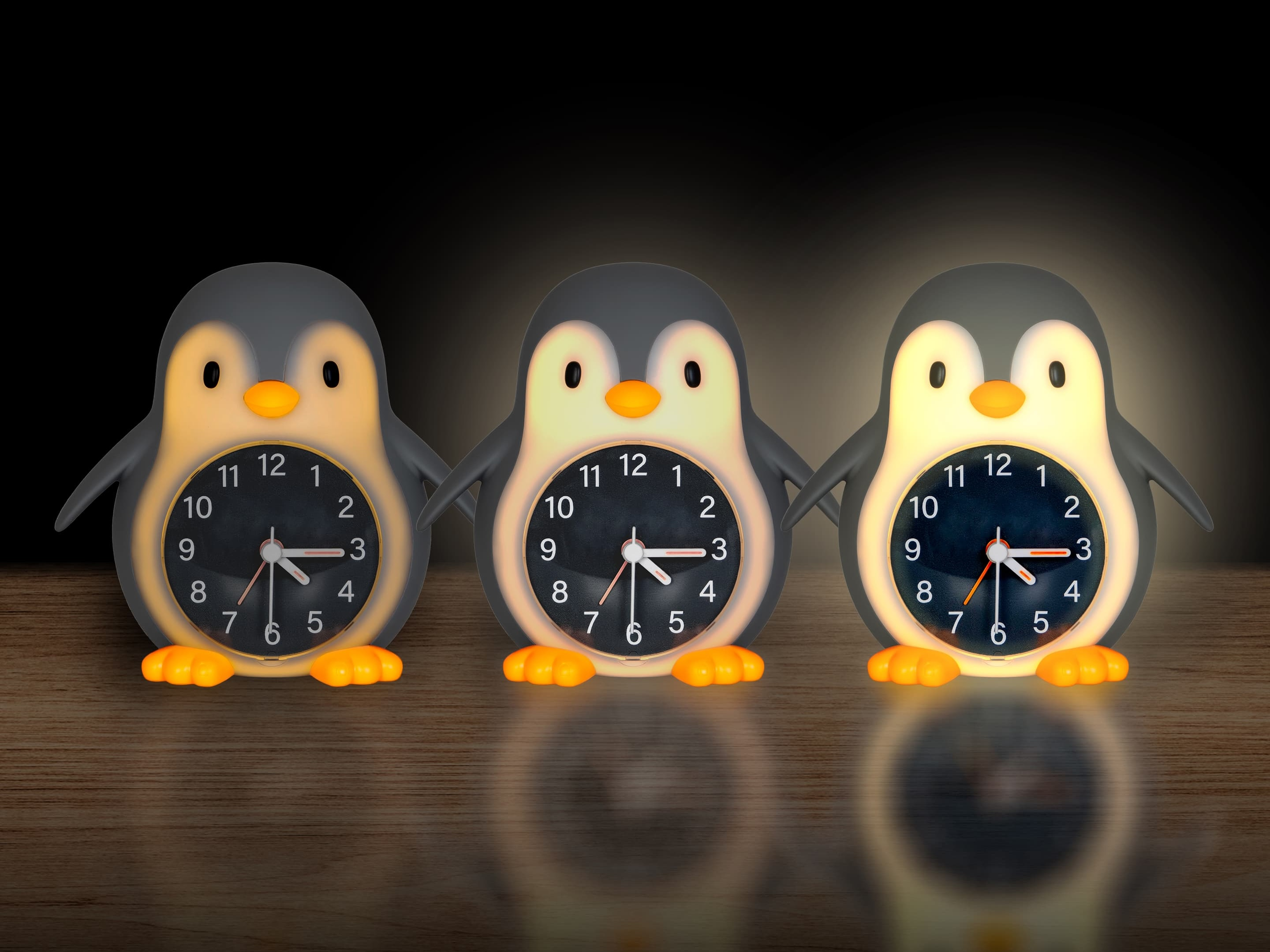 Roztomilé noční světlo s integrovaným budíkem v podobě tučňáka MegaLight Poppy Penguin pomáhá dětem usínat i probouzet se s úsměvem. Kombinuje funkci uklidňujícího nočního světla, praktického časovače a jemného probuzení pomocí světla. Díky svému designu bude i krásnou dekorací v dětském pokoji.