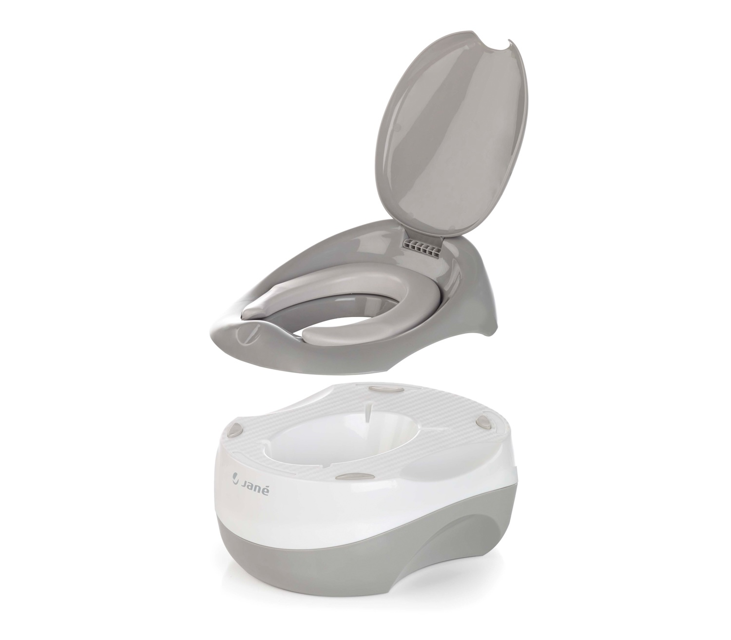 Nočník Jané 3v1 je múdre riešenie, ktoré prevedie dieťa celým prechodom z plienok na toaletu. V jednom produkte získate klasický nočník, univerzálnu WC redukciu a stupienok, ktorý pomáha dieťaťu pohodlne vystúpiť k toalete. Jednotlivé časti sú ľahko nasadzovacie a odnímateľné, takže ich môžete používať presne podľa aktuálnej fázy učenia. Pre maximálnu stabilitu je nočník aj stupienok vybavený protišmykovými prvkami. Nočník má odnímateľnú nádobu na ľahké čistenie a ergonomické polstrované sedadlo pre väčšie pohodlie.