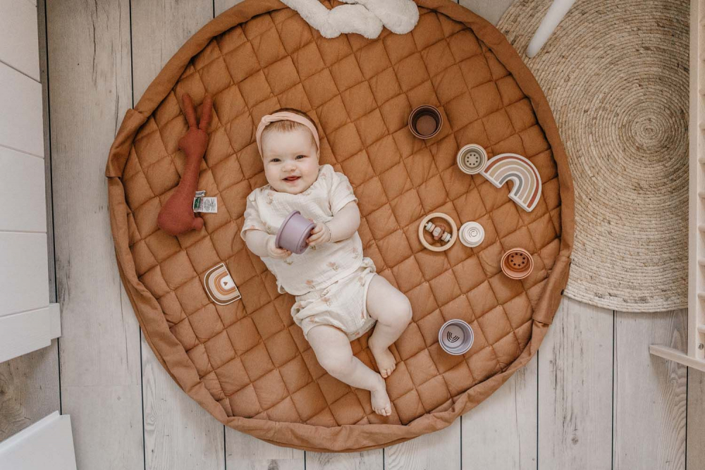 Má 120 cm v průměru a je vyrobená z organické bavlny GOTS, aby dítě mělo maximální požitek a pohodlí.