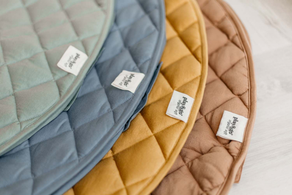 Jedinečná čalouněná dětská hrací podložka, která je zároveň úložným vakem na hračky a kapsou na pleny.