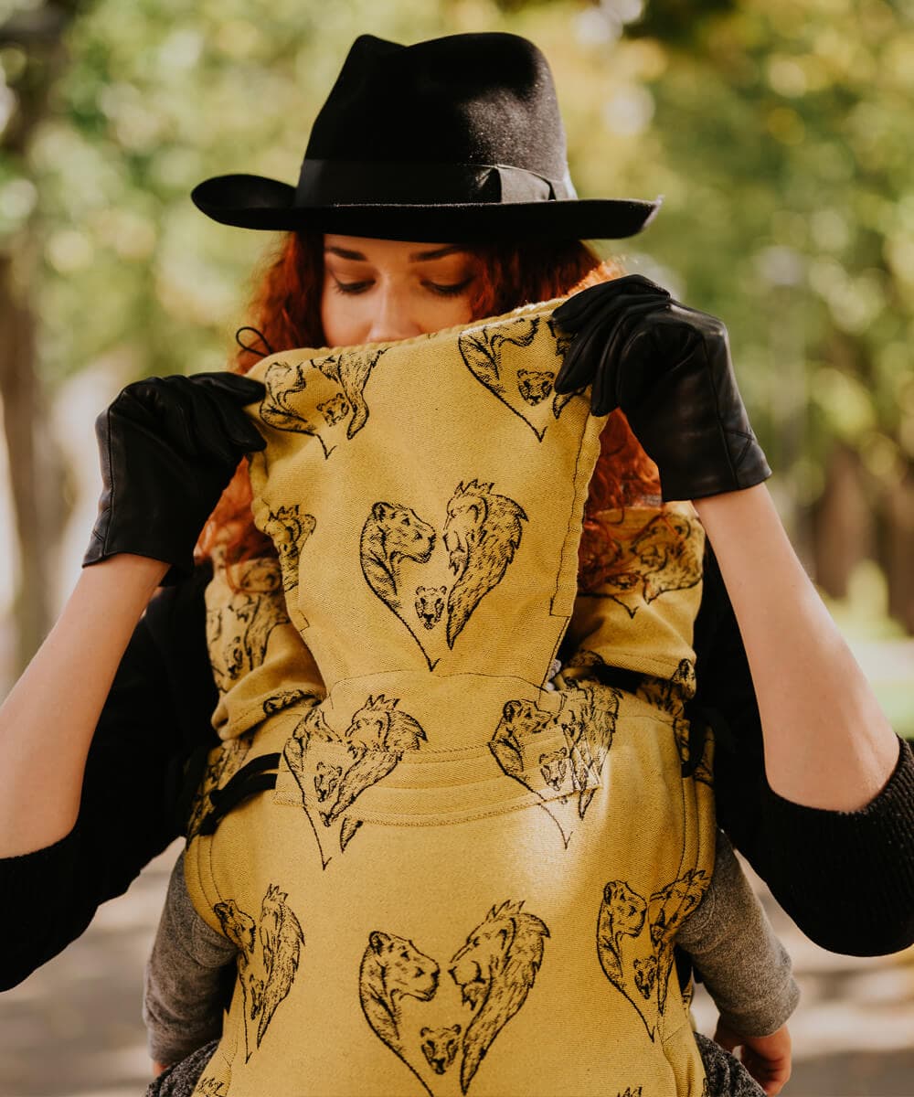 - fixačná kapucňa zabezpečuje fixáciu hlavičky pri väčších deťoch a je súčasťou nosiča