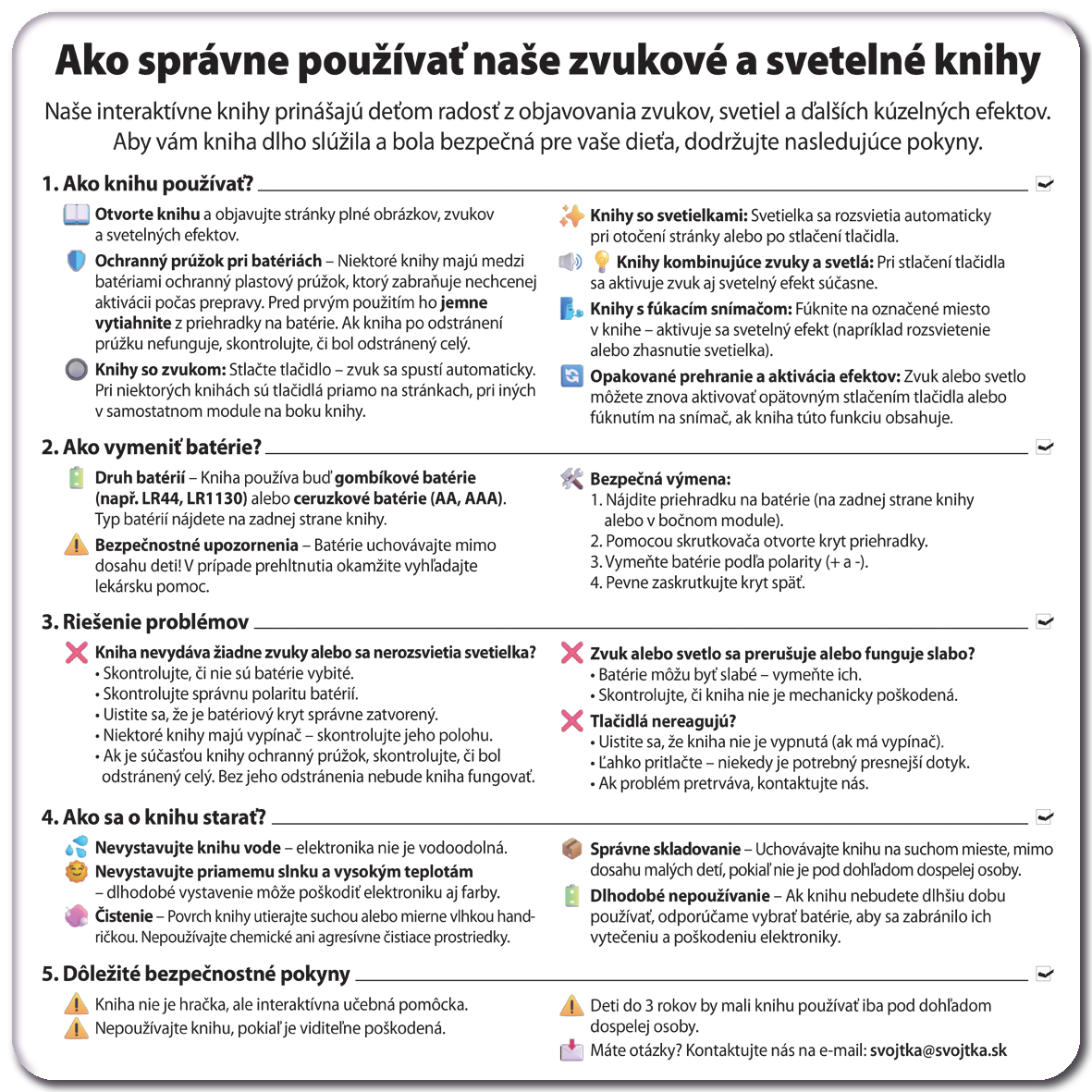 Šírka: 215Rozmery: 215 x 270 mmVäzba: Leporelo zvukovéExpedícia: 2025-11-10Vytlačené: ČínaTyp batérií: 3x AG10/LR1130Vek: 1-2, 3-5, 2-3Téma: prvé slová, spánok a na dobrú nocTyp knihy: zvukové
