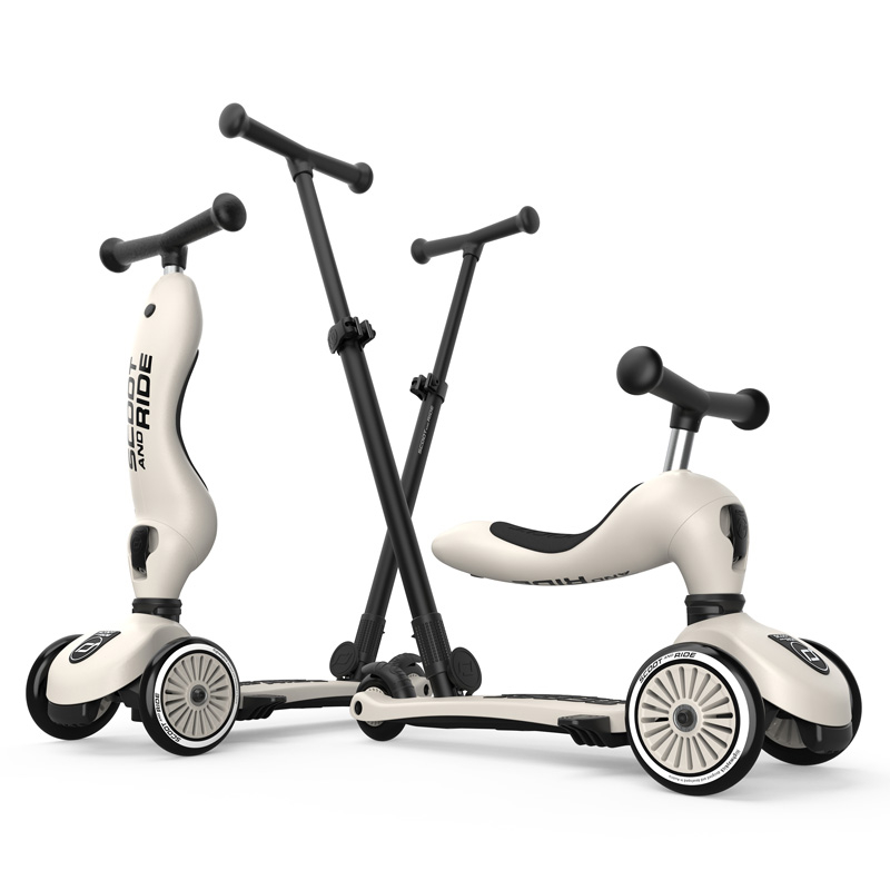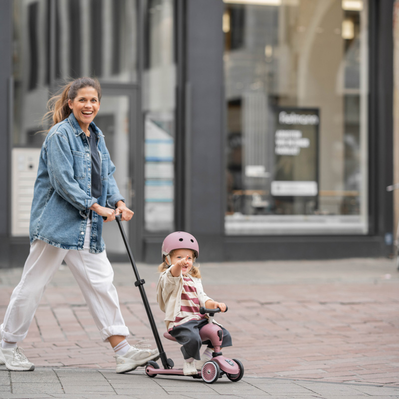 Highwaykick 1 Push and Go kombinuje všetky výhody modelu Highwaykick 1 s novou, dôležitou funkciou – rodičovskou tyčou na tlačenie. Teraz je možné pohodlne tlačiť deti vo veku 1 až 3 rokov, či už v sede alebo v stoji. Praktická tlačná tyč sa dá jednoducho upevniť na základňu kolobežky bez potreby náradia a je nastaviteľná v troch výškových úrovniach. Na základňu je možné pripojiť aj opierky na nohy, aby si deti mohli pri tlačení pohodlne odpočinúť. Všetky známe funkcie modelu Highwaykick 1, ako je systém 2v1 alebo výškovo nastaviteľné sedadlo, zostávajú zachované aj s verziou Push and Go. Tento model teda naďalej rastie spolu s vaším dieťaťom.