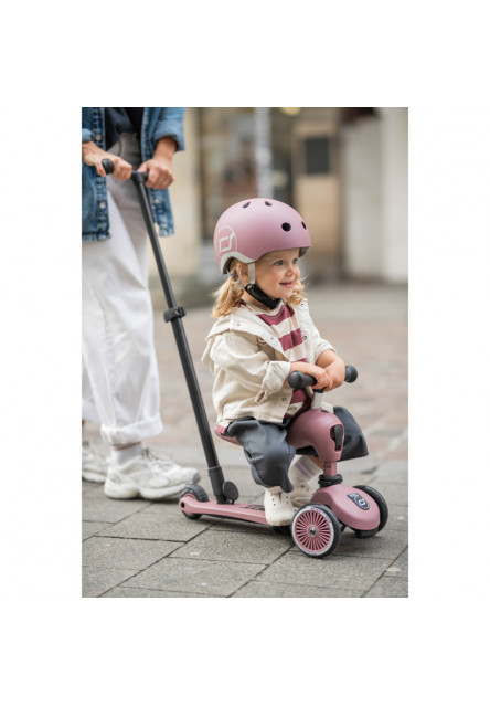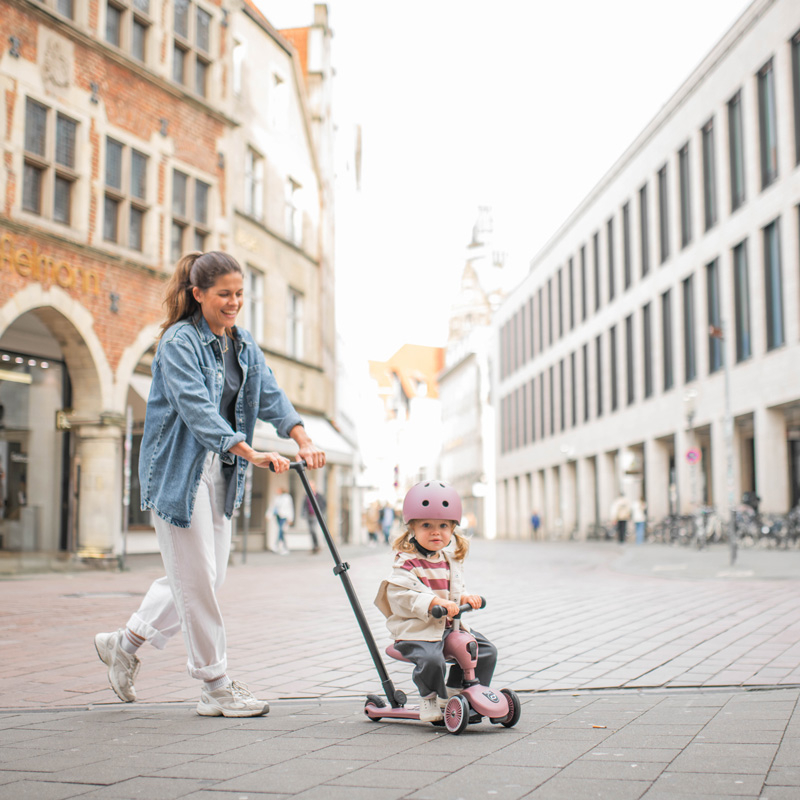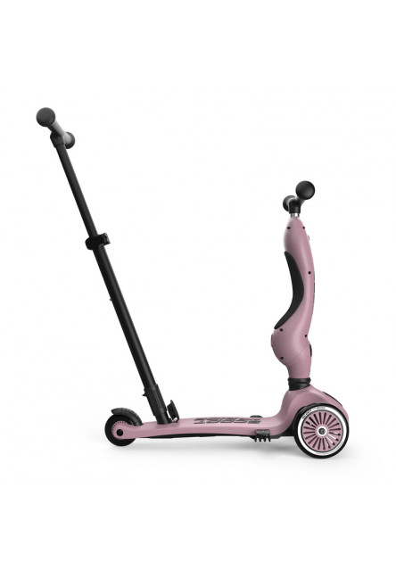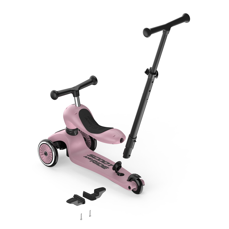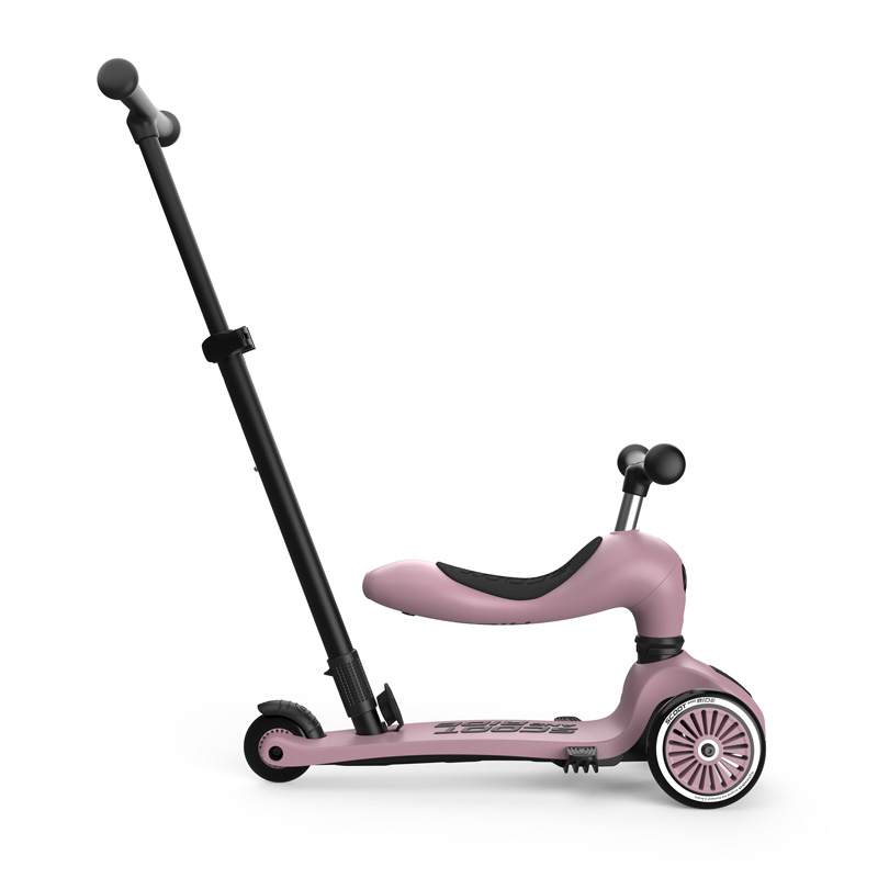 Highwaykick 1 Push and Go kombinuje všetky výhody modelu Highwaykick 1 s novou, dôležitou funkciou – rodičovskou tyčou na tlačenie. Teraz je možné pohodlne tlačiť deti vo veku 1 až 3 rokov, či už v sede alebo v stoji. Praktická tlačná tyč sa dá jednoducho upevniť na základňu kolobežky bez potreby náradia a je nastaviteľná v troch výškových úrovniach. Na základňu je možné pripojiť aj opierky na nohy, aby si deti mohli pri tlačení pohodlne odpočinúť. Všetky známe funkcie modelu Highwaykick 1, ako je systém 2v1 alebo výškovo nastaviteľné sedadlo, zostávajú zachované aj s verziou Push and Go. Tento model teda naďalej rastie spolu s vaším dieťaťom.