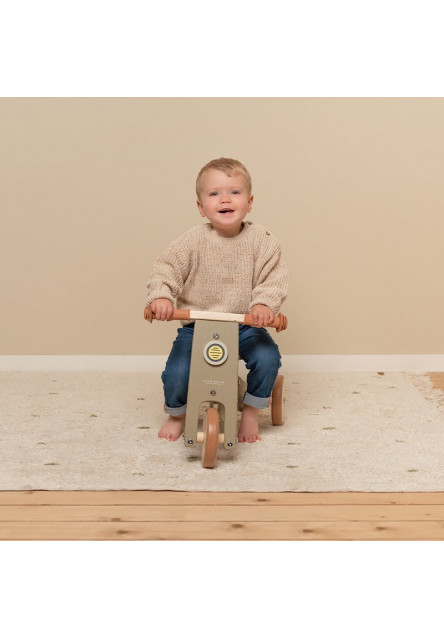 Dětské odrážedlo v krásném dřevěném provedení se třemi koly pro větší stabilitu. Kola mají pryžovou hranu pro hladkou jízdu, pryžové rukojeti řídítek poskytují příjemné držení a ovládání odrážedla. Robustní sedadlo umožňuje pohodlné a stabilní sezení.