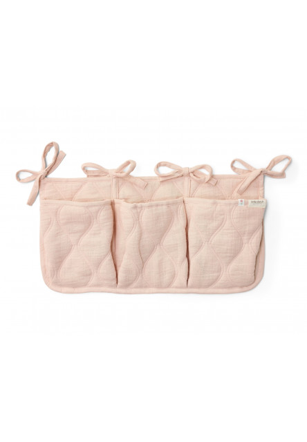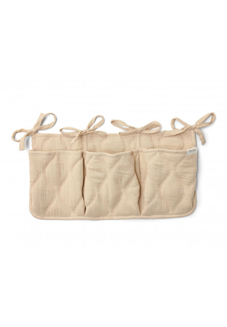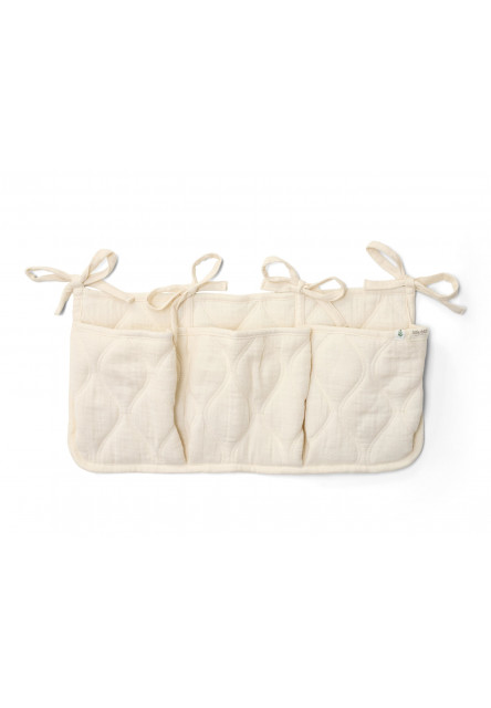 Praktický závěsný organizér v krásném provedení s ozdobným prošíváním vám umožní mít vše potřebné pro péči o vaše miminko vždy po ruce. Organizér ze 100% organické bavlny nabízí tři prostorné kapsy pro uložení dudlíků, bryndáčků, plen, ubrousků, hraček apod. Pomocí praktických vázacích šňůrek jej snadno připevníte k přebalovacímu pultu, na stěnu či na postýlku.