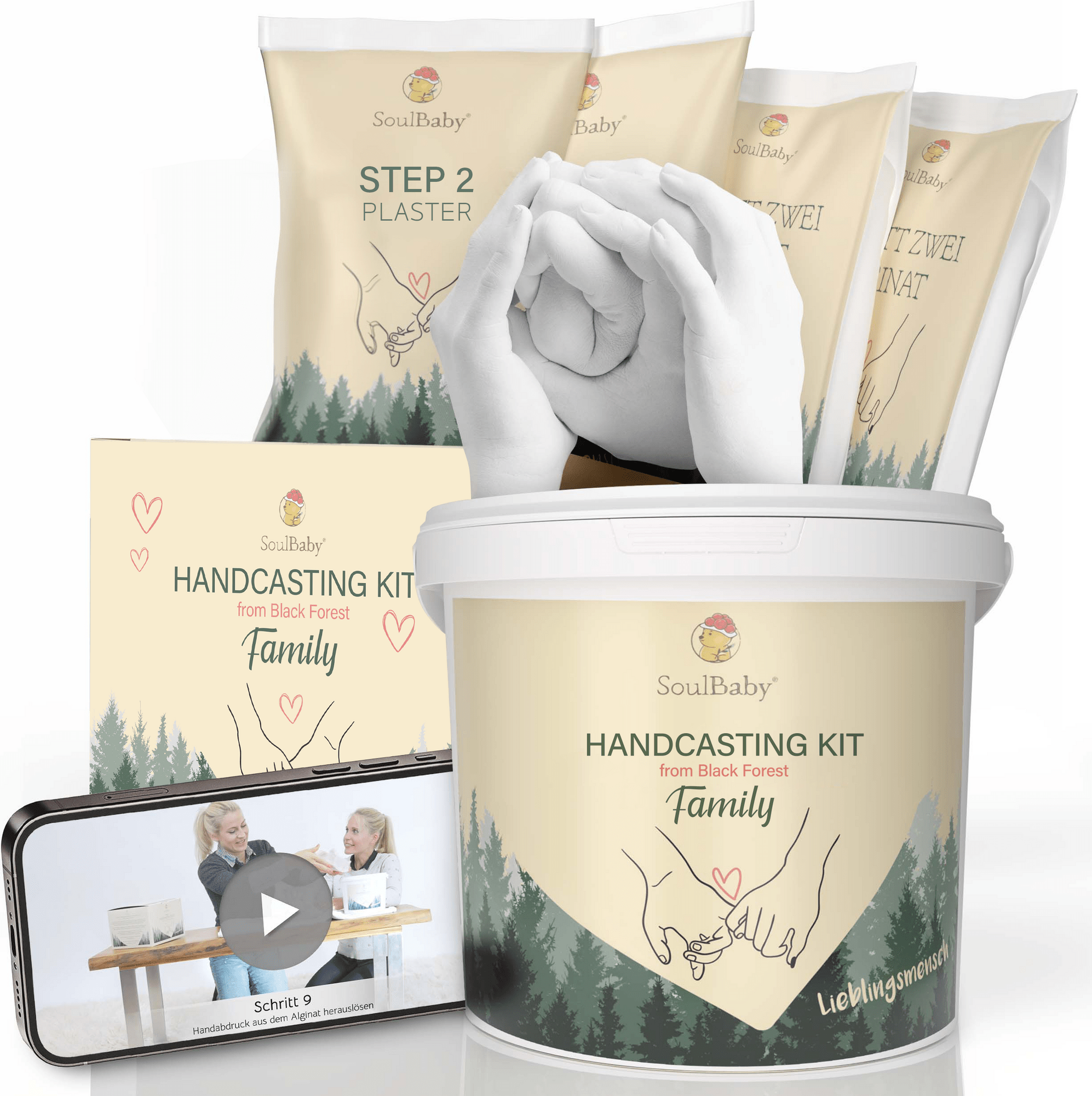Kompletná sada Premium - máte všetko, čo potrebujete pre detailný odliatok ruky a spoločné šťastné chvíle Extra veľké pre 4 - 5 rúk - vďaka extra veľkému vedierku, je 3D súprava odliatkov ideálna pre 4 veľké ruky a ponúka dostatok priestoru pre prvotriedny sadrový odliatok v ľubovoľnej individuálnej póze Jednoducho a bezpečne - podrobné pokyny krok za krokom, video pokyny Obsahuje darčekové balenie - vďaka elegantnému baleniu môžete darovať nádherný darček, ktorý zabezpečí dobre strávený čas a vytvorí spomienky celej rodine