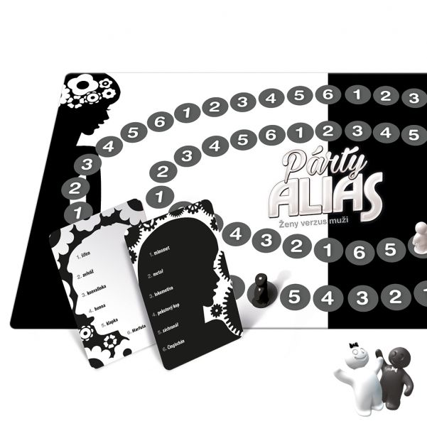 Obľúbená párty hra Párty Alias v najnovšej verzii. Ako už napovedá názov, v hre budú hrať ženy proti mužom, alebo, muži proti ženám. Oproti hrám Párty Alias a Párty Alias Velká stávka je v tejto hre iba hovorenie, žiadna pantomíma, ani kreslenie. Jeden z hráčov vysvetľuje slovo alebo slovné spojenie svojmu tímu tak, aby ho uhádli a tým sa priblížili k víťazstvu. Zdá sa vám to príliš jednoduché? Tak pozor, má to jeden háčik: ženy budú vysvetľovať slová z mužského sveta a muži vysvetľujú slová zo sveta žien. Ženy budú opisovať ženám napríklad hasák, karburátor, a pod. Muži budú popisovať mužom čo je ovulácia, pedikúra, a pod. Veľký počet slov zaručí, že sa vám hra len tak neobohrá. Hra Párty Alias Ženy verzus muži obsahuje: hrací plán, 400 kariet obsahujúcich 2 400 slov, presýpacie hodiny, 2 figúrky a pravidlá v slovenčine.