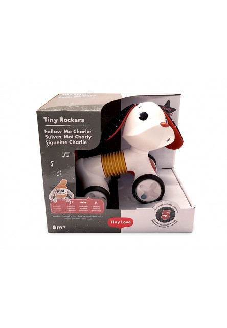 Roztomilá hudební hračka v podobě pejska s natahovacím harmonikovým tělem a kolečky zabaví dítě od hraní na bříšku přes lezení a samostatné sezení až po první krůčky. Stisknutím hlavy se pejsek rozjede, umí i štěkat a hrát 5 melodií. Díky ohebnému tělu umí sedět i při jízdě zatáčet. Jeho hlavou s šusticíma ušima je možné otáčet.