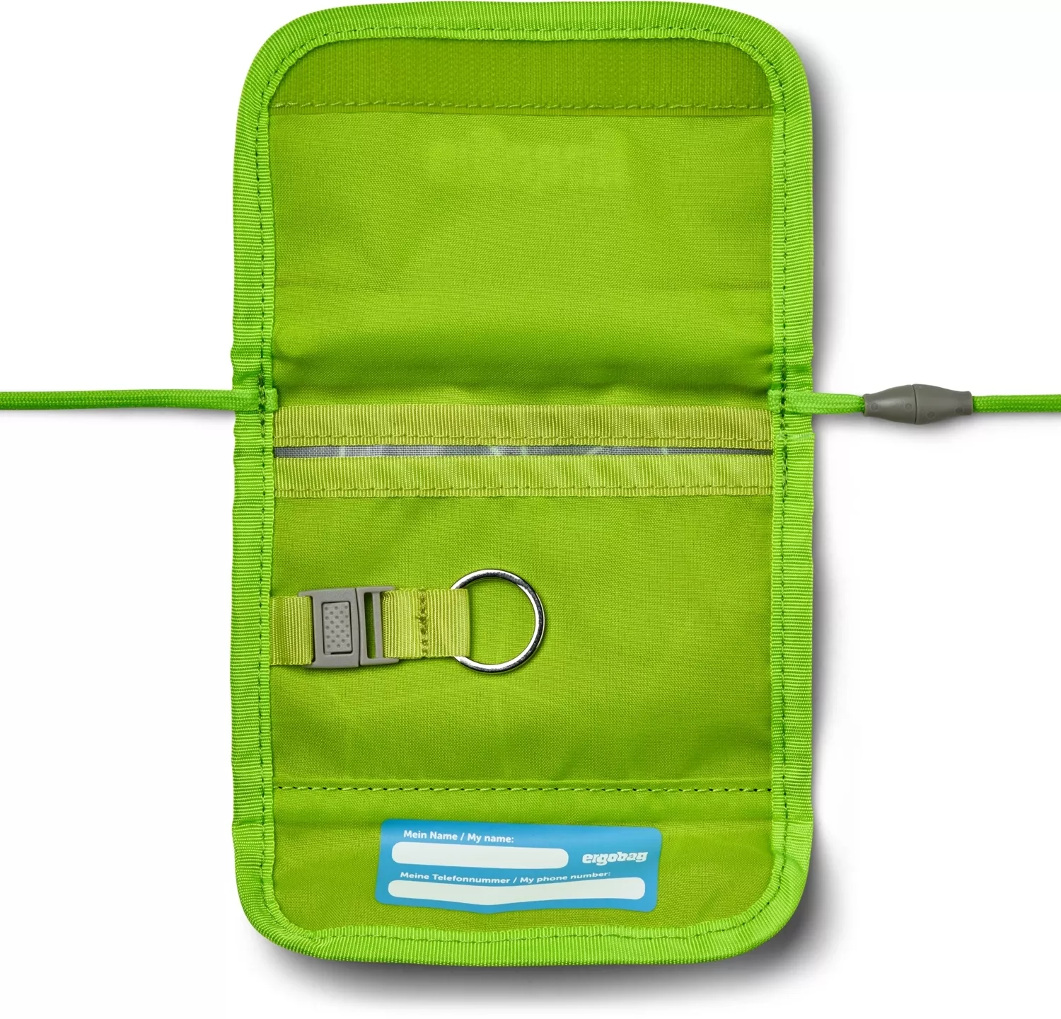 Multifunkčná peňaženka Ergobag nájde využitie nielen ako peňaženka, ale aj ako kľúčenka. Vo vnútri peňaženky je priehradka na bankovky, občianske preukazy a krúžok na kľúče, aby deti mali kľúče vždy po ruke.
