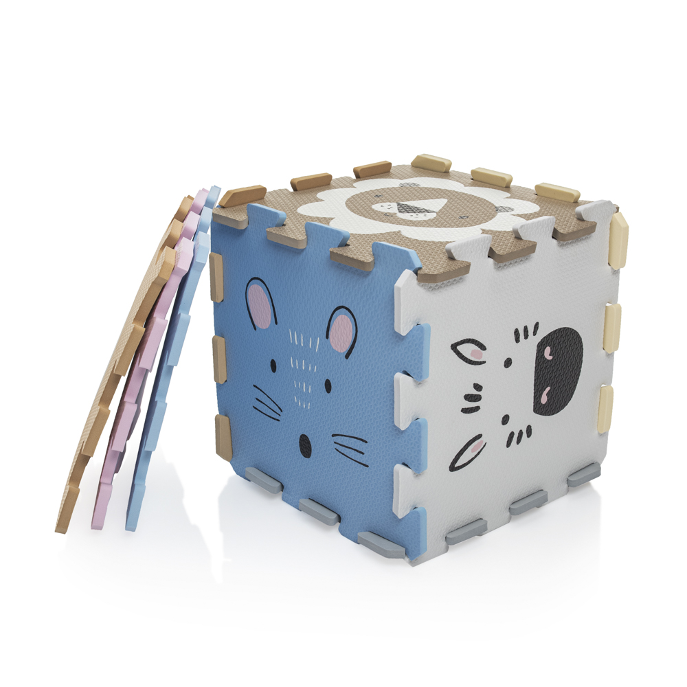 Jednotlivé dlaždice 30 × 30 cm (9 ks) do seba perfektne zapadajú. Podložka je vhodná pre deti od narodenia, vyrobená z nezávadného a príjemného materiálu.