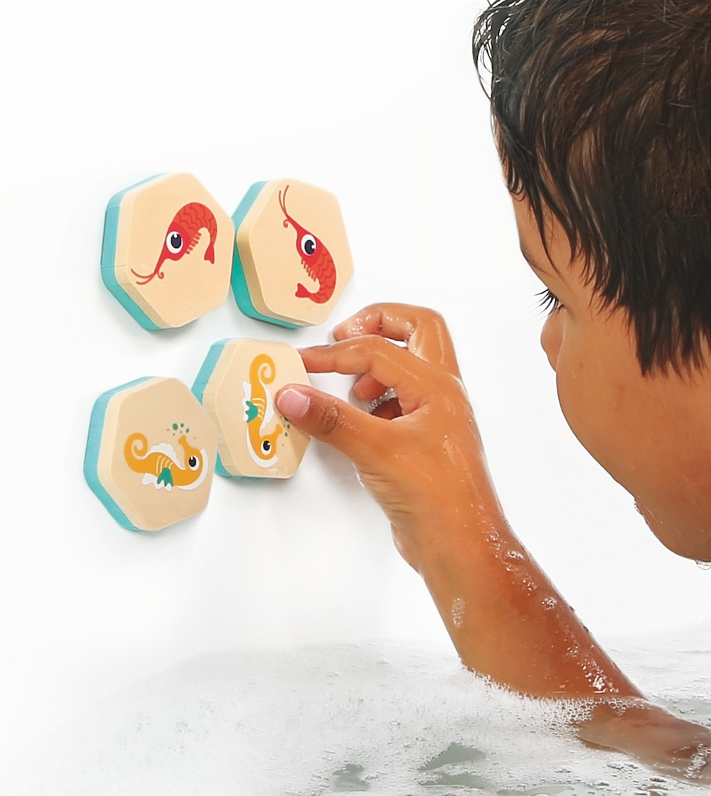 Pexeso pro nejmenší s krásnými motivy z podmořského světa vám umožní zahrát si s vaším dítětem pexeso ve vaně. Kartičky jsou vyrobené z pěnového materiálu, který plave na hladině. Stačí je rozložit na hladinu a hra může začít.