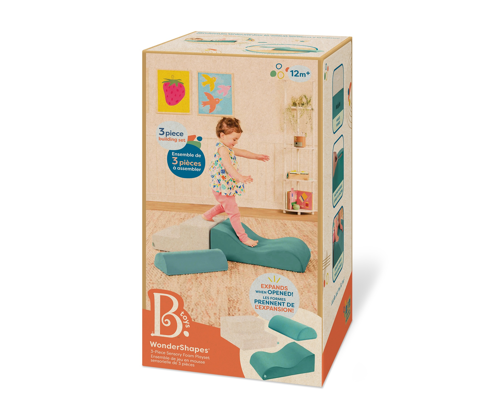 3-dílná sada pěnových tvarů WonderShapes promění každý dětský pokoj nebo hernu v zábavné hřiště plné fantazie. Obsahuje schůdky, vlnitou rampu a půlválec – ideální pro tvorbu překážkových drah, prolézaček i kreativních staveb. Po rozbalení se jednotlivé díly samy roztáhnou do plné velikosti – jako kouzlem! Díky madlům si děti mohou své hřiště přestavovat dle chuti, zatímco měkké potahy zajistí pohodlí i bezpečnost.