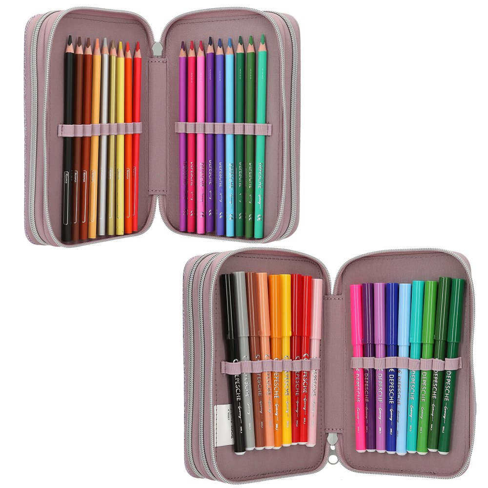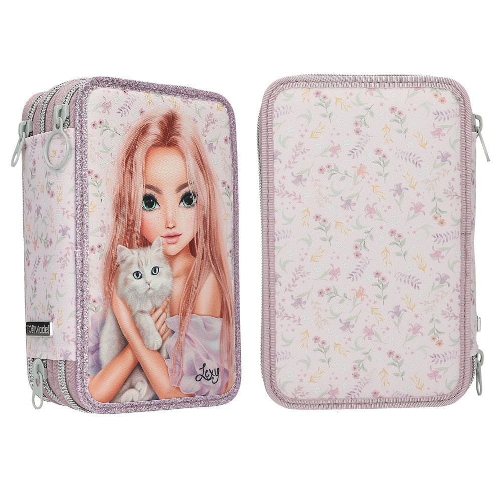 Praktický trojposchodový školský peračník odolný proti bežnému opotrebovaniu. Jedinečná náplň peračníka ponúka - 2 ceruzky, 18 pasteliek, 18 fixiek, nožnice, lepidlo, pravítko, strúhadlo, gumu a vrecko na drobnosti. Peračník ponúka dostatočný vnútorný priestor postačujúci potrebám mladších i starších školáčok. Spoľahlivé bezporuchové zapínanie na zips a originálny štýlový dizajn značky Top Model vytvorili z tohto peračníka obľúbenú školskú pomôcku. Materiálové zloženie: 100% polyester. Rozmery peračníka: 20,5 x 13,5 x 7,5 cm. Vhodné pre deti od 3 rokov.