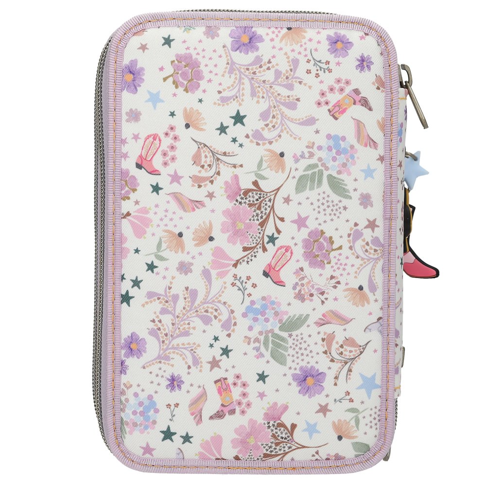 Praktický trojposchodový školský peračník odolný proti bežnému opotrebovaniu. Jedinečná náplň peračníka ponúka - 2 ceruzky, 18 pasteliek, 18 fixiek, nožnice, lepidlo, pravítko, strúhadlo, gumu a vrecko na drobnosti. Peračník ponúka dostatočný vnútorný priestor postačujúci potrebám mladších i starších školáčok. Spoľahlivé bezporuchové zapínanie na zips a originálny štýlový dizajn značky Top Model vytvorili z tohto peračníka obľúbenú školskú pomôcku. Materiálové zloženie: 100% polyester. Rozmery peračníka: 20,5 x 13,5 x 7,5 cm. Vhodné pre deti od 3 rokov.