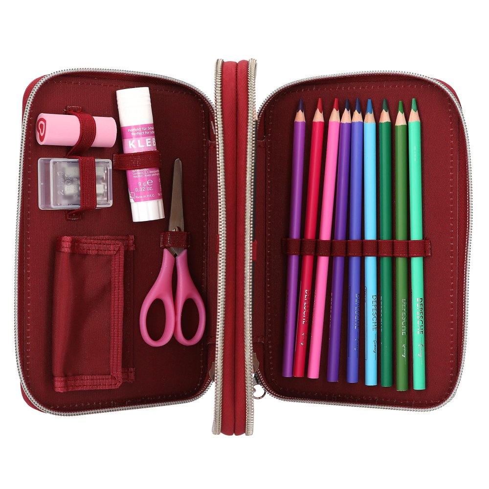 Roztomilý peračník TOPModel v tmavočervenej farbe s milým motívom psíka a mačičky obsahuje 18 pasteliek, gumu,strúhadlo, lepidlo, nožnice, 2 ceruzky, pavítko a vrecko na drobnosti. Rozmery: 20x13x5,5 cm