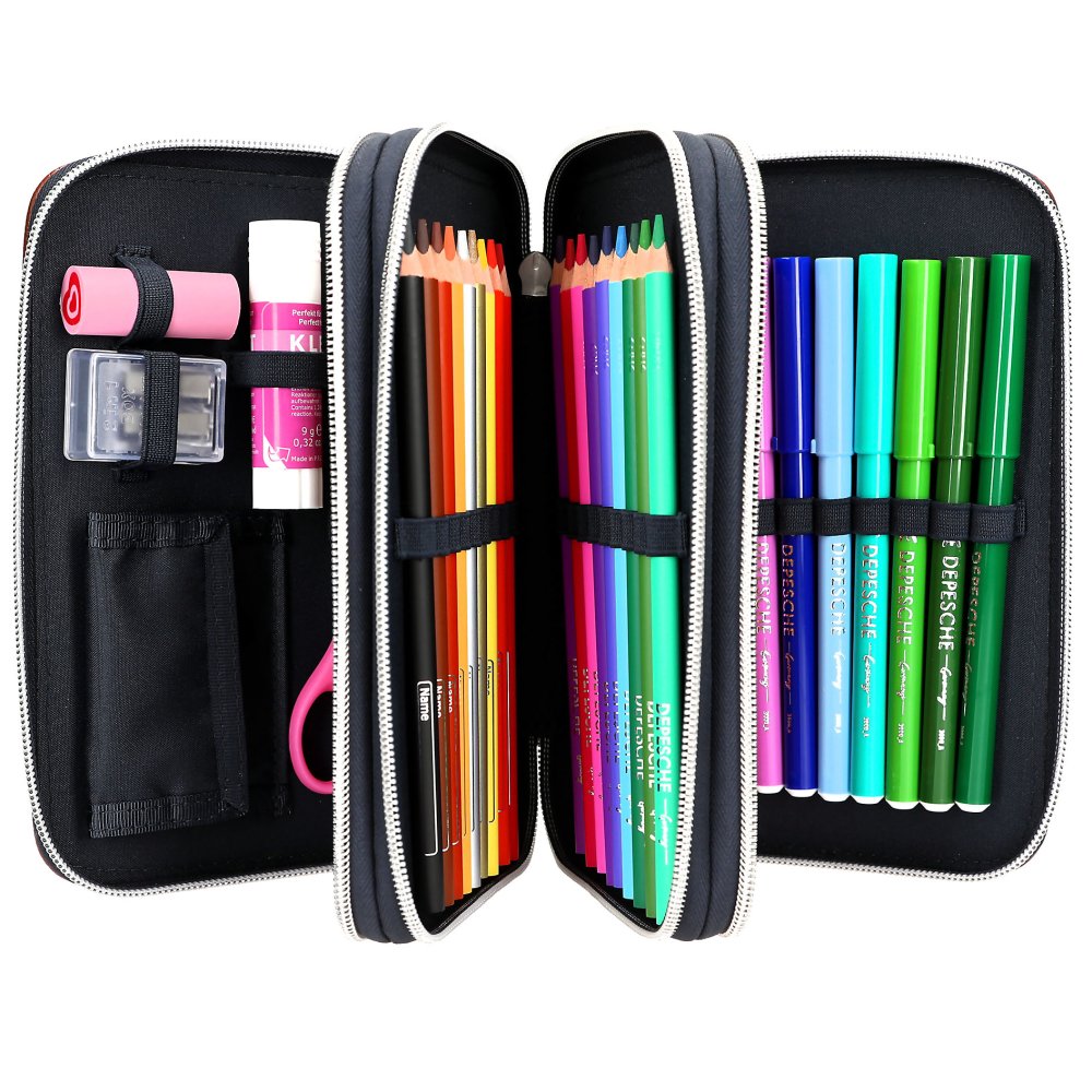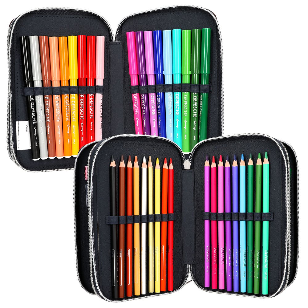 Praktický trojposchodový školský peračník vyrobený z kvalitného materiálu odolného proti bežnému opotrebovaniu. Jedinečná náplň peračníka ponúka - 2 ceruzky, 18 pasteliek, 18 fixiek, nožnice, lepidlo, pravítko, strúhadlo, gumu a zrkadlo. Peračník ponúka dostatočný vnútorný priestor postačujúci potrebám mladších i starších školáčok.Spoľahlivé bezporuchové zapínanie na zips a originálny štýlový dizajn značky Miss Melody vytvorili z tohto peračníka obľúbenú školskú pomôcku.Materiálové zloženie: 100% polyester.Rozmery peračníka: 20 x 13 x 7,5 cm.Vhodné pre deti od 3 rokov.