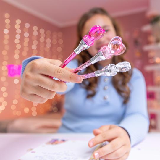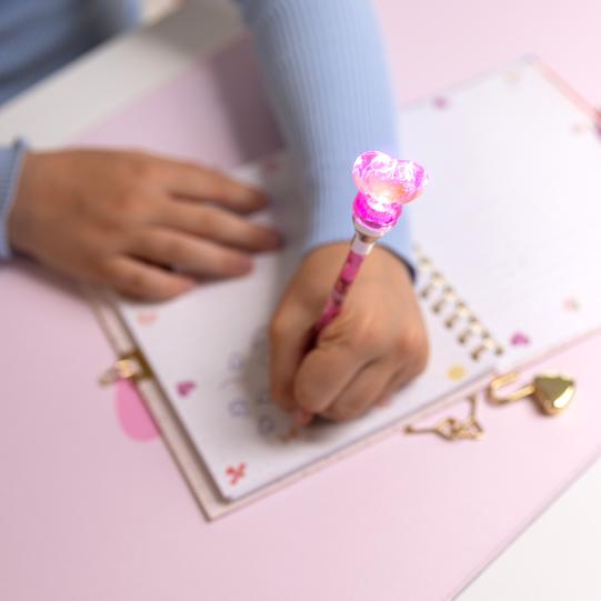 V jemnej žiare sa píše jednoducho fantasticky, pretože žiari pri každom stlačení. Úplne magické! S bielym, ružovým alebo cyklámenovým srdiečkom a s fantastickými motívmi od TOPModel. (modrá náplň, batérie nie je možné vymeniť) 17,3x2,5cm