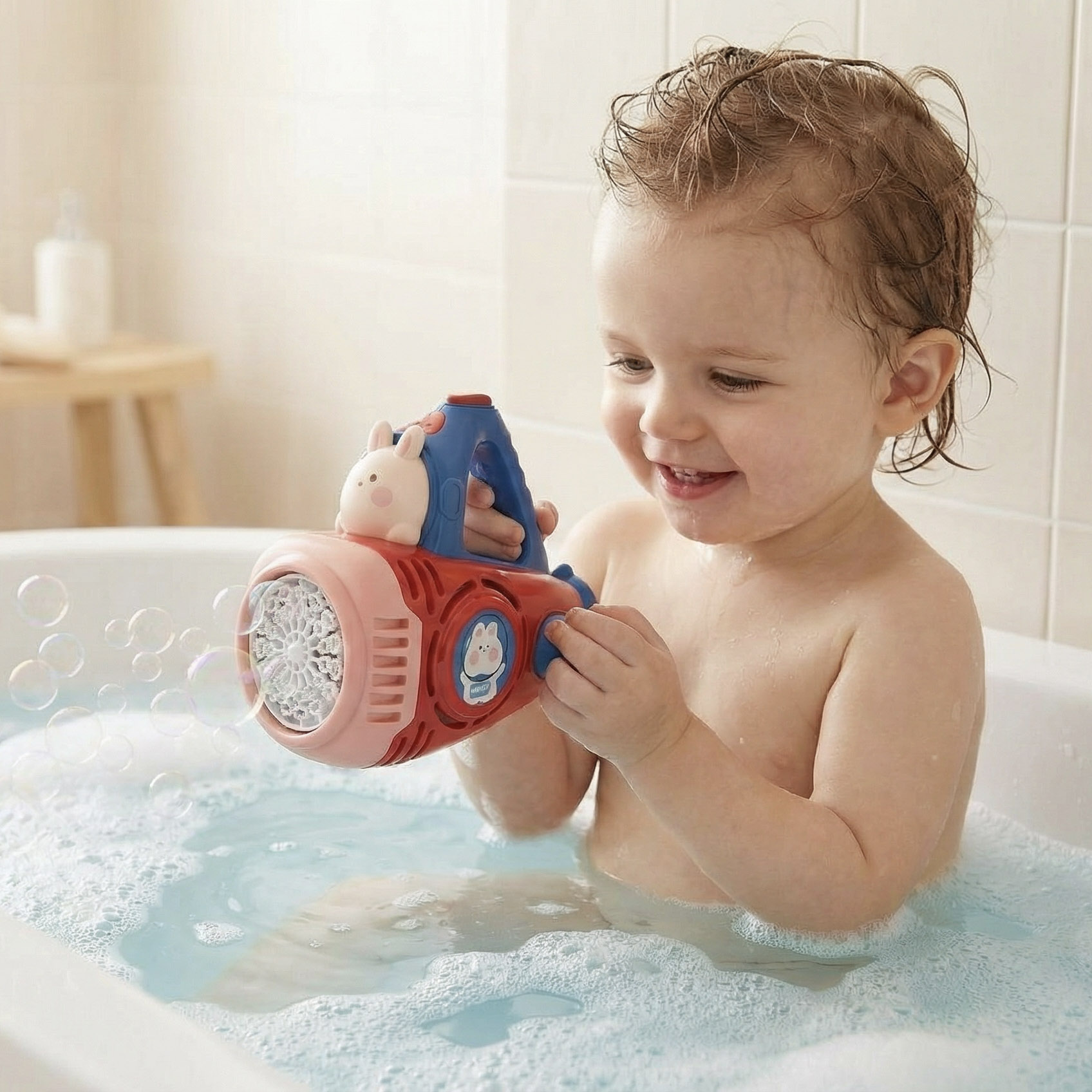 Pistole na tvoření bublin ZajíčekSvět bublin s králíčkemPistole na tvoření bublin Zajíček udělá z každého koupání ale i ze hry na dvoře nezapomenutelnou bublinovou show. Do nádobky stačí nalít bublinový roztok, připojit ji k pistoli a jedním stisknutím spouště se spustí proud drobných bublinek, které děti milují honit a praskat.Lehká konstrukce a ergonomická rukojeť jsou přizpůsobeny dětským ručkám, takže se hračka pohodlně drží a neunavuje ruku ani při delším používání. Pistole je vyrobena z kvalitního plastu, který je odolný vůči nárazům a zároveň má hladké hrany pro bezpečnější hru. Hračka funguje na baterie, které nejsou součástí balení.Nevhodné pro děti do 3 let. Používejte pouze pod přímým dohledem dospělé osoby.
