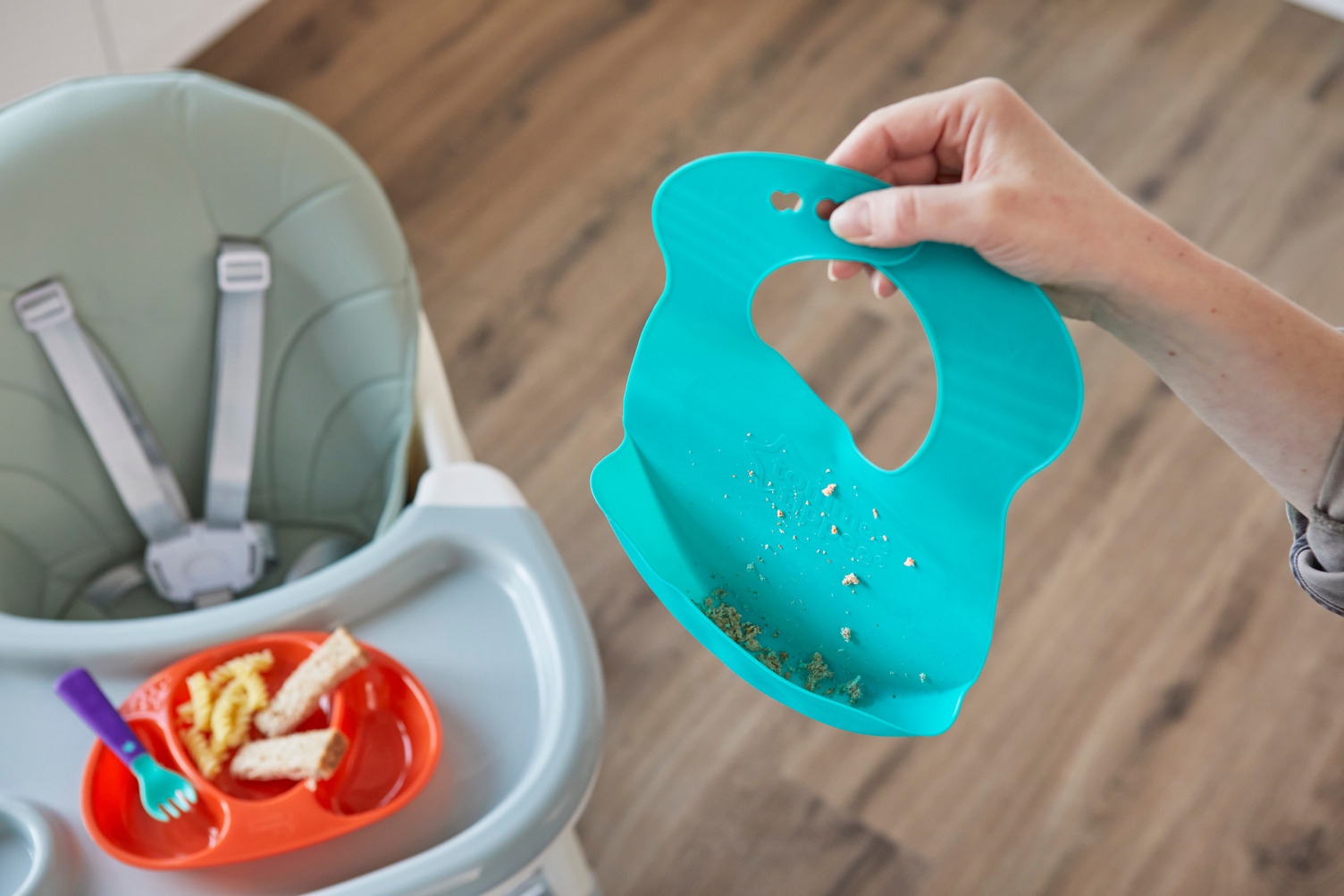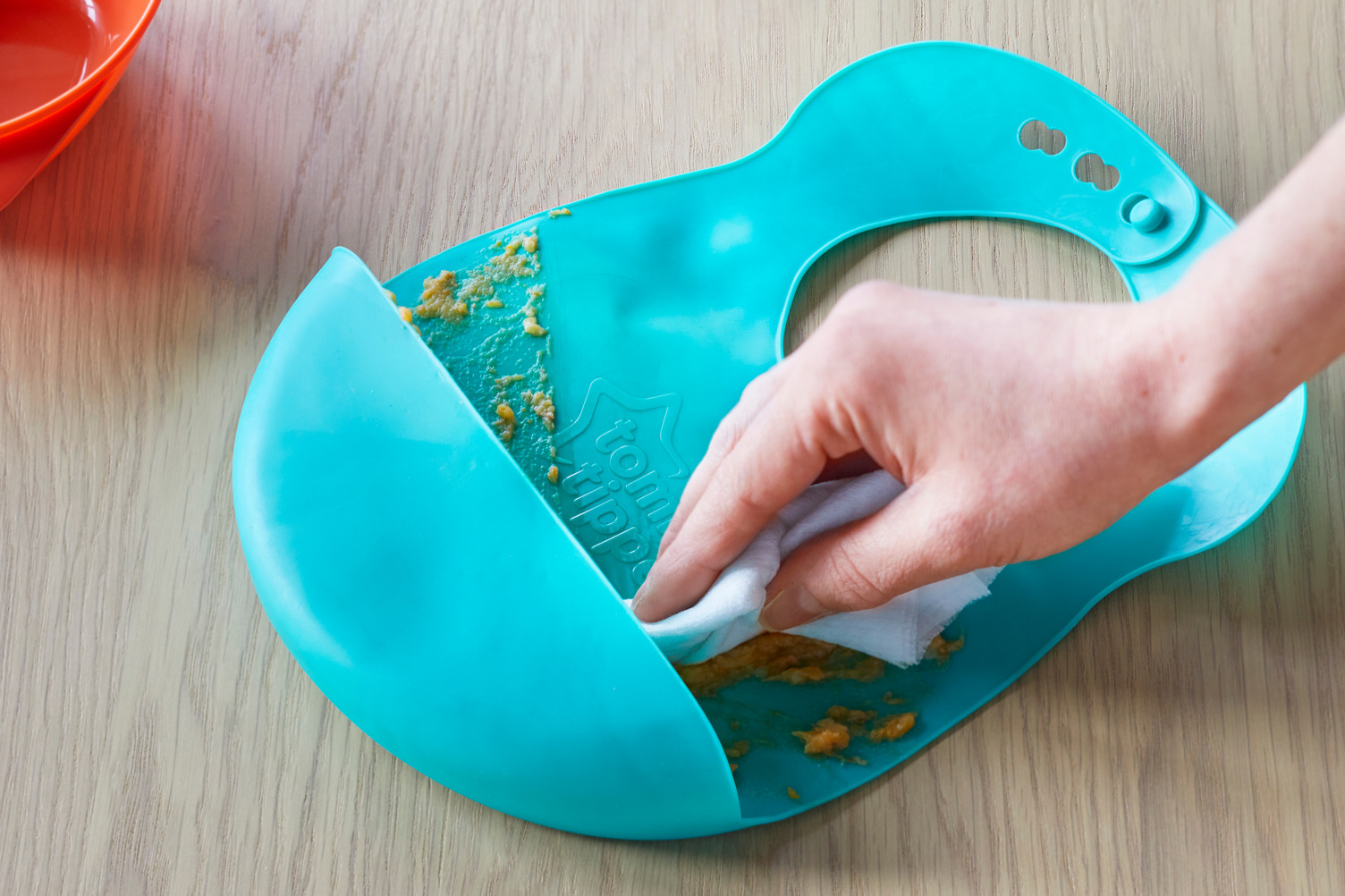 Bryndák Tommee Tippee Explora je měkký a jemný podobně jako látka, ale zároveň je velmi snadno omyvatelný. Lze ho srolovat do malé ruličky a použít i na cesty, okap zachytí bezpečně vše, co spadne ze lžičky. Lze upravit velikost kolem krku. Speciálně upravený povrch umožňuje proudění vzduchu a zabraňuje zapaření pokožky.