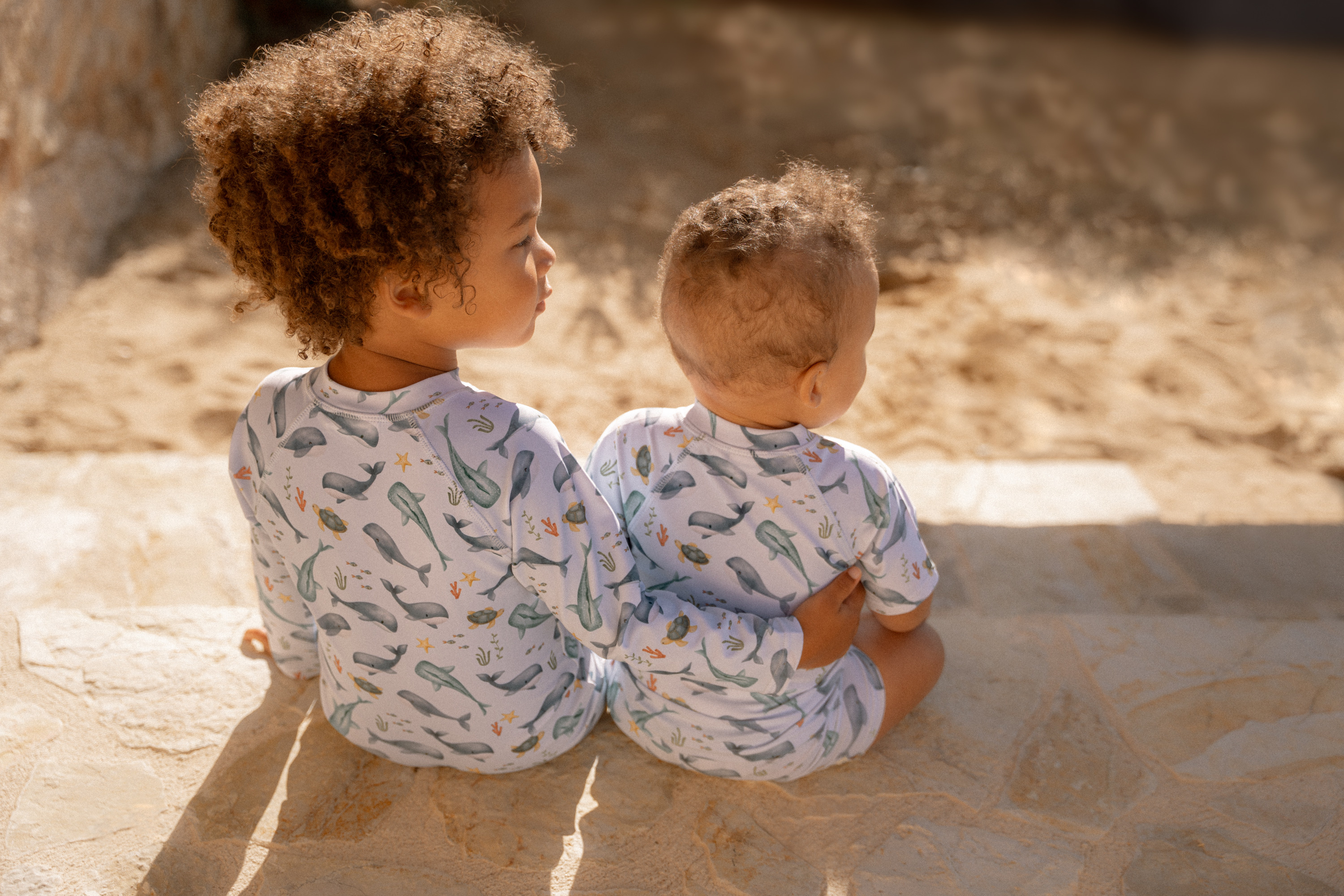 Plavky z UV ochranné tkaniny s krásným potiskem chrání vaše dítě před sluncem při koupání u moře i doma na zahradě. Ať už vaše děti milují skákání ve vlnách, koupání v bazénu nebo si rády staví hrady z písku, v těchto plavkách si mohou bezstarostně užívat celý den.