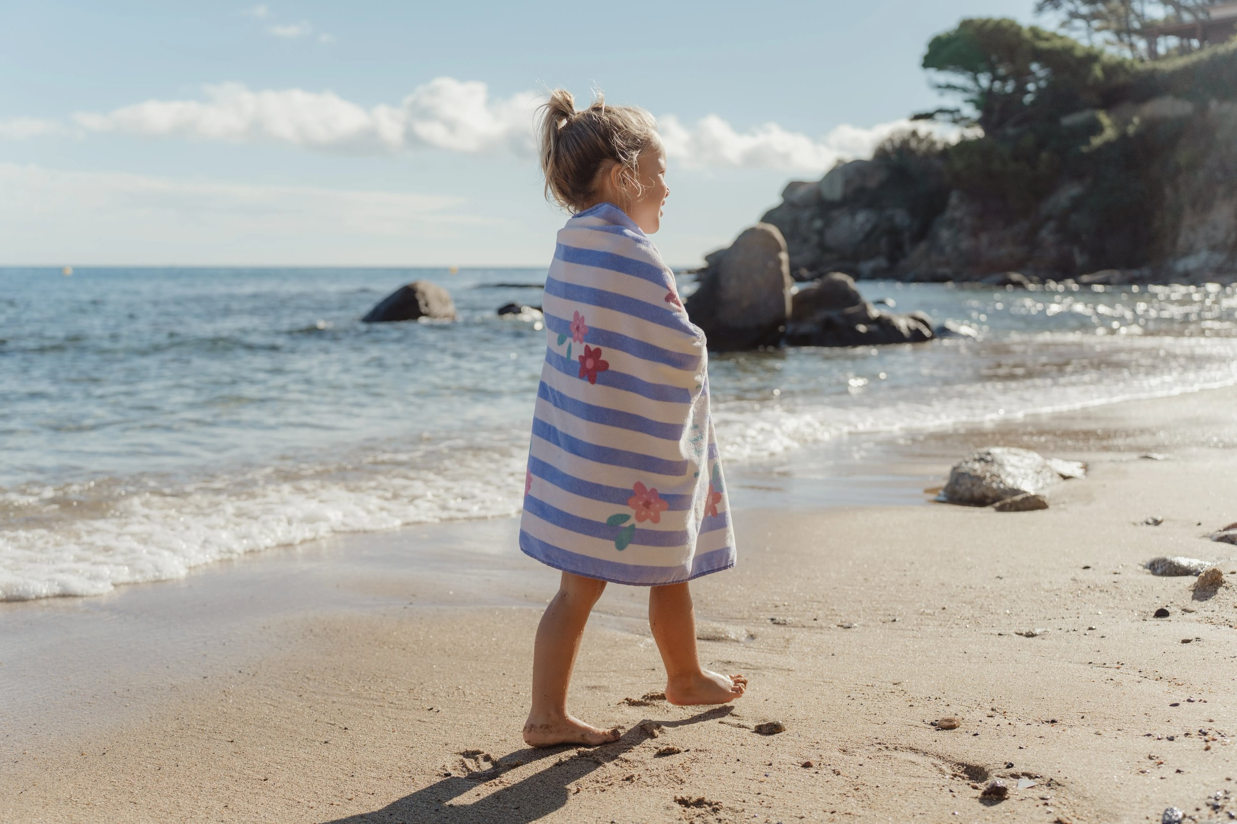 Mäkká froté osuška z jemnej organickej bavlny s krásnou potlačou je ideálna pre ľahké a rýchle osušenie a zabalenie dieťaťa po kúpaní v bazéne, v mori aj doma po kúpeli.
