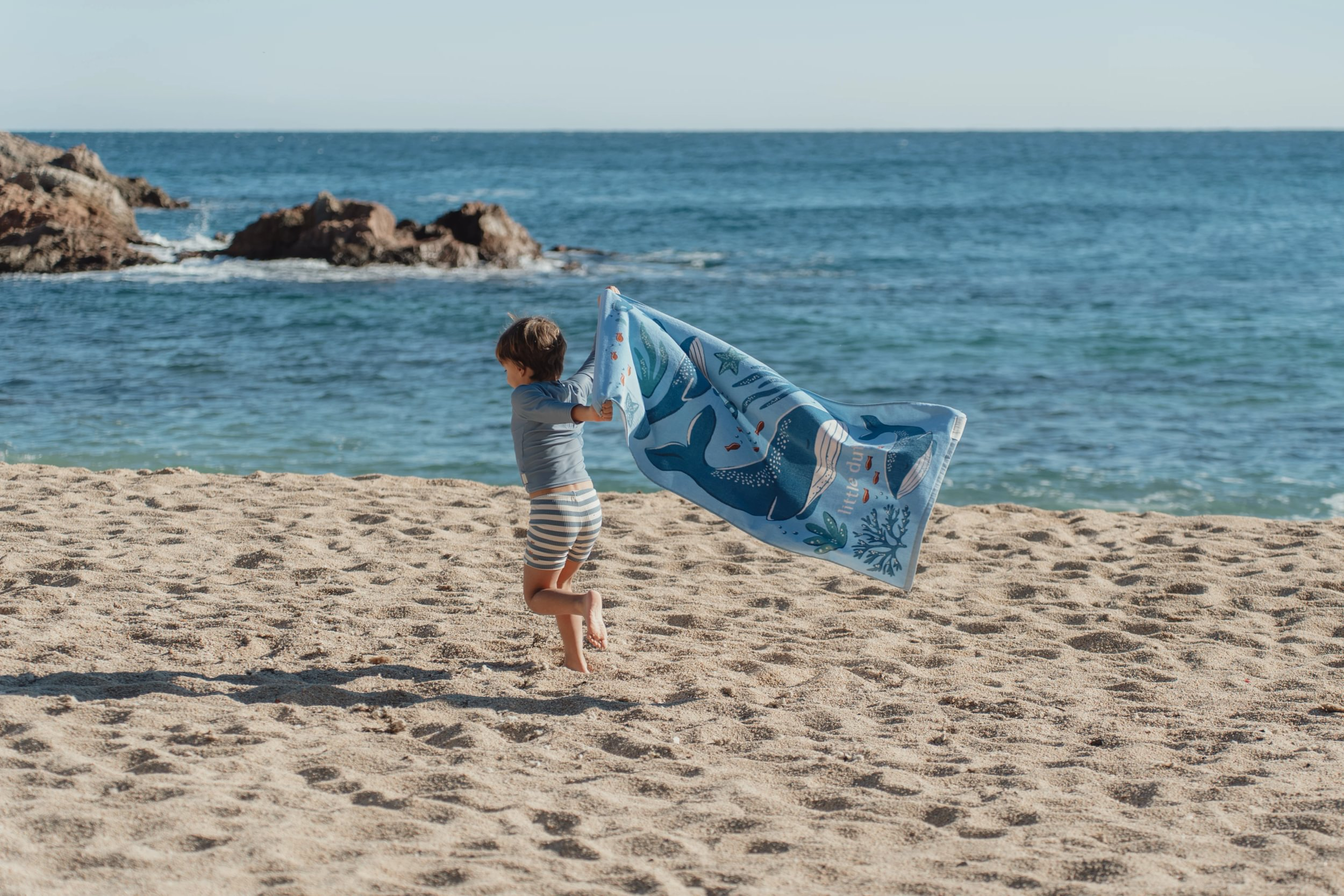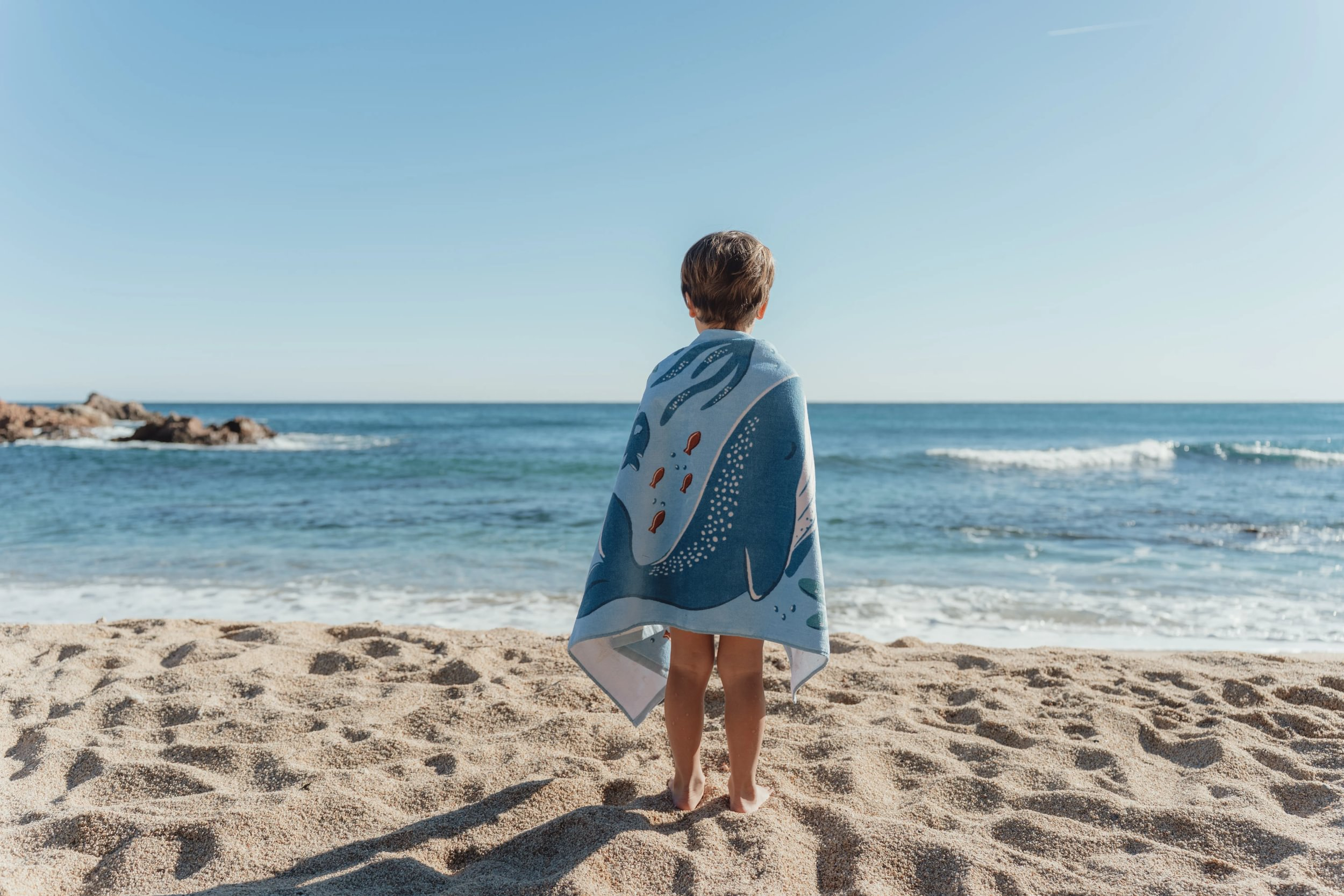 Mäkká froté osuška z jemnej organickej bavlny s krásnou potlačou je ideálna pre ľahké a rýchle osušenie a zabalenie dieťaťa po kúpaní v bazéne, v mori aj doma po kúpeli.