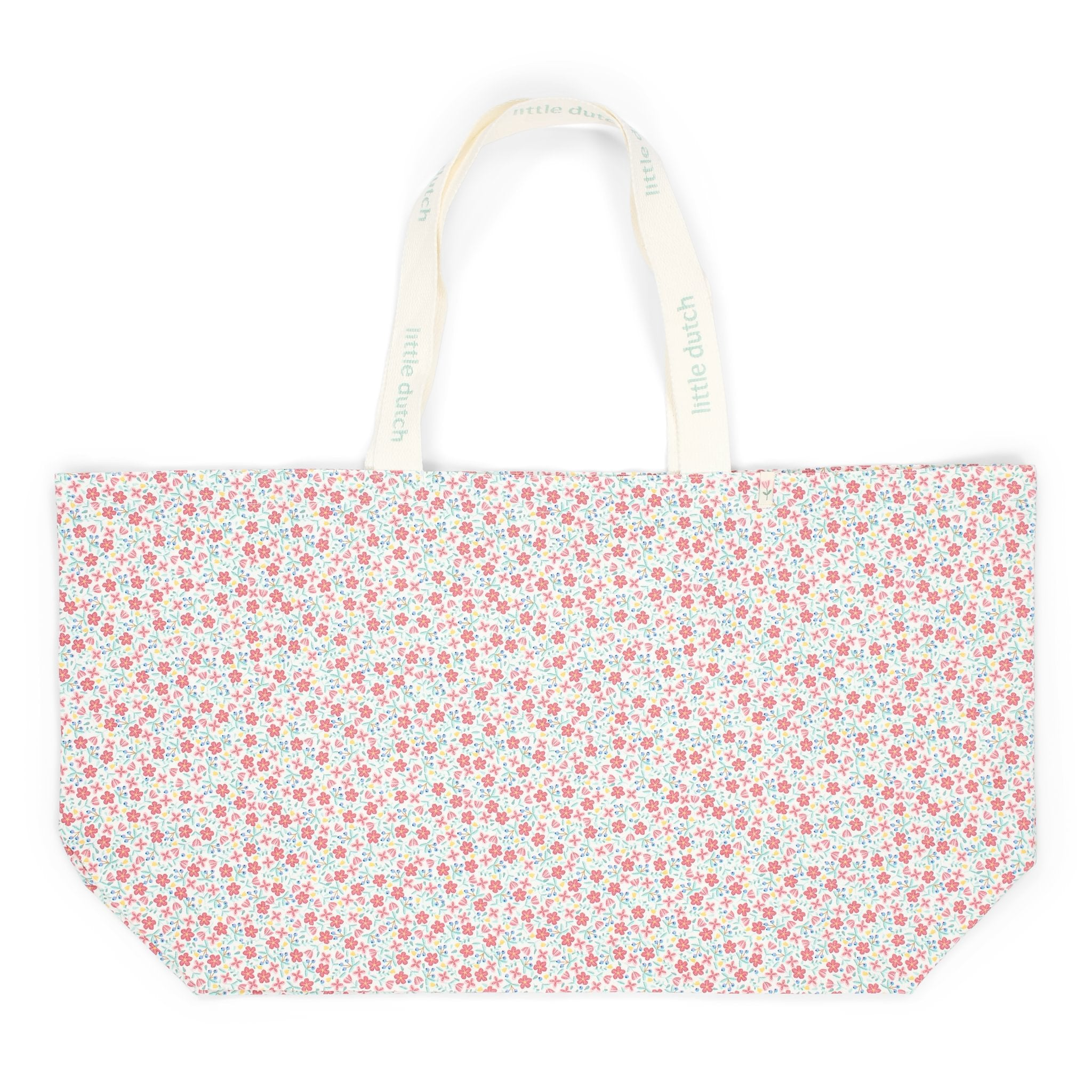 Plátěná plážová taška z organické bavlny s krásným květinovým potiskem je ideální pro uložení všeho potřebného pro den na pláži či u bazénu. Vnitřní kapsa na zip umožňuje bezpečné uložení klíčů, peněženky apod.