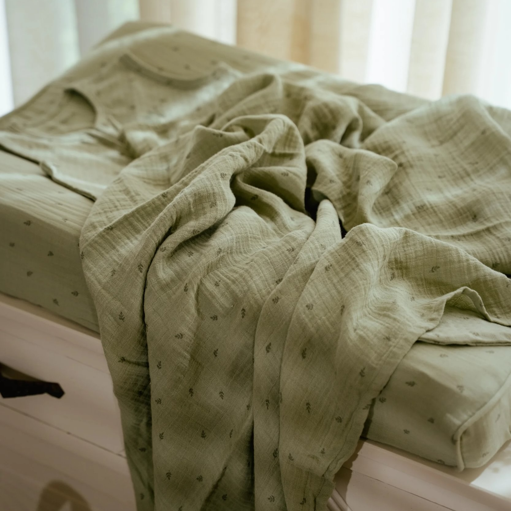 Little Dutch Plena zavinovací 120x120 cm s potiskem Pure Sage