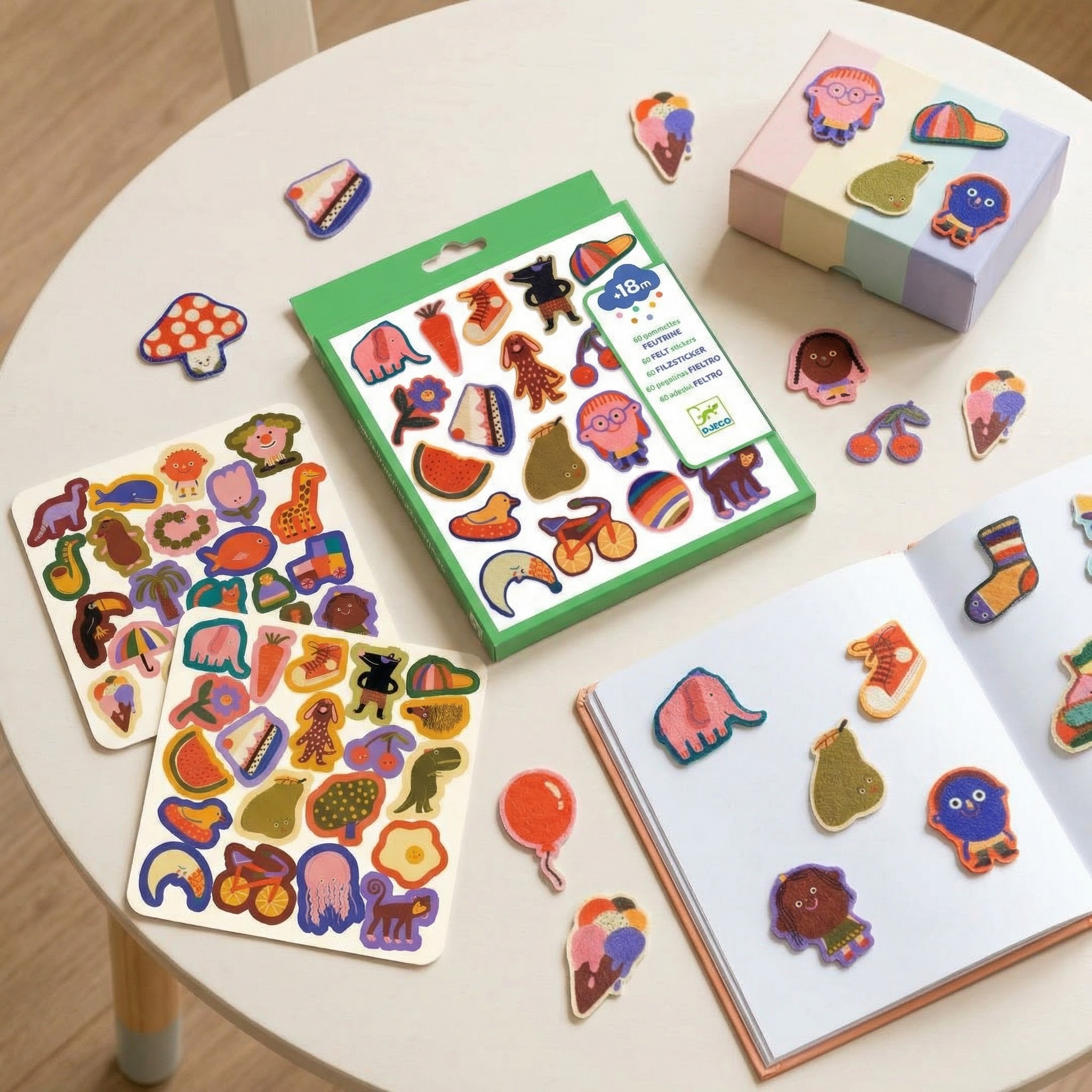 Plstěné samolepky Velká zábava 60 ks První lepení už od 18 měsíců: měkoučká plsť a tvary, které se snadno držíPlstěné samolepky Velká zábava jsou jednoduchá tvořivá aktivita pro nejmenší, která je hravou formou seznámí s lepením.Samolepky jsou z měkké plsti a mají obrysové (snadno uchopitelné) tvary, takže se dobře drží v malých ručičkách a snadno se odlepují z podkladu.Dítě je může lepit na papír, sešit nebo výkresy a vytvářet veselé obrázky – bez lepidla a bez nepořádku.Obsah balení 60× plstěná samolepka (snadno uchopitelné tvary)Rychlý přehled doporučený věk: od 18 měsíců formát balení: přibližně 20 × 20 cm materiál: měkká plsť rozvíjí: jemnou motoriku, koordinaci oko–ruka, kreativitu udržitelnost: kartonový obal s FSC certifikací