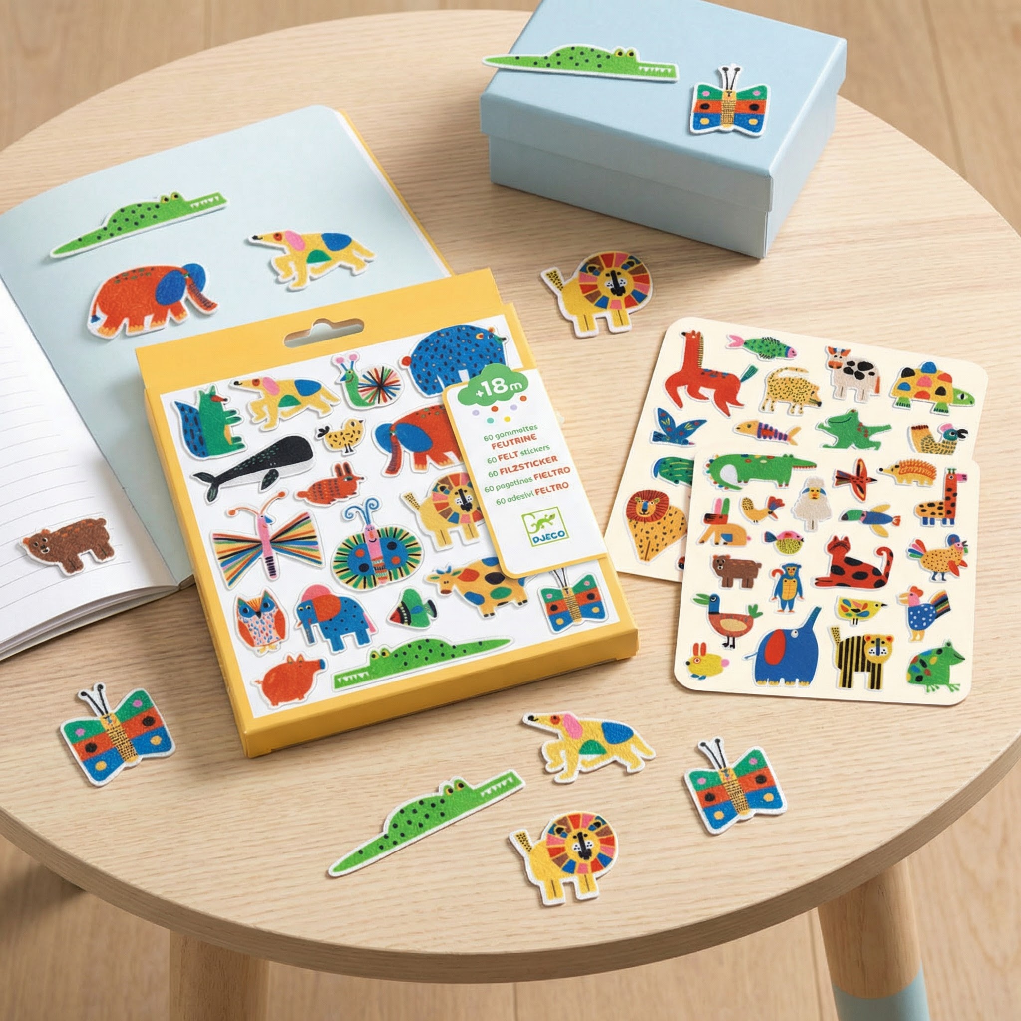 Plstěné samolepky Zvířátka 60 ks První lepení už od 18 měsíců: měkoučká plstěná textura a tvary, které se snadno držíPlstěné samolepky Zvířátka jsou jednoduchá tvořivá aktivita pro nejmenší, která je bezpečně a hravě seznámí s lepením.Samolepky jsou z měkké plsti a mají plastické/obrysové tvary, takže se dobře drží v malých ručičkách a snadno se odlepují z podkladu.Dítě je může lepit na papír, sešit nebo výkresy a vytvářet vlastní obrázky plné zvířátek – bez nepořádku a bez lepidla.Obsah balení 60× plstěná samolepka se zvířátkyRychlý přehled doporučený věk: od 18 měsíců formát balení: přibližně 20 × 20 cm materiál: měkká plsť (snadno uchopitelné tvary) rozvíjí: jemnou motoriku, koordinaci oko–ruka, kreativitu udržitelnost: kartonový obal s FSC certifikací
