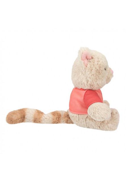 Plyšová kočička je velmi příjemná na dotek a má na sobě triko s nápisem Yummie.