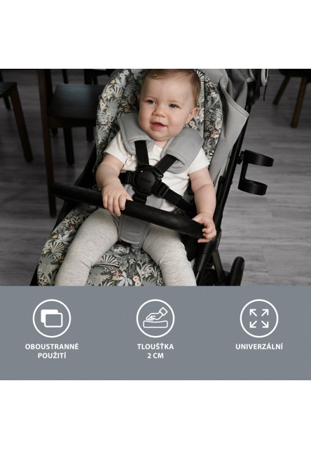 Unikátní oboustranný design umožňuje snadnou změnu vzhledu, zároveň chrání sedák kočárku před nečistotami. Jednoduchá instalace a univerzální použitelnost pro většinu typů kočárků. Ideální volba pro rodiče hledající kombinaci stylu, pohodlí a funkčnosti.