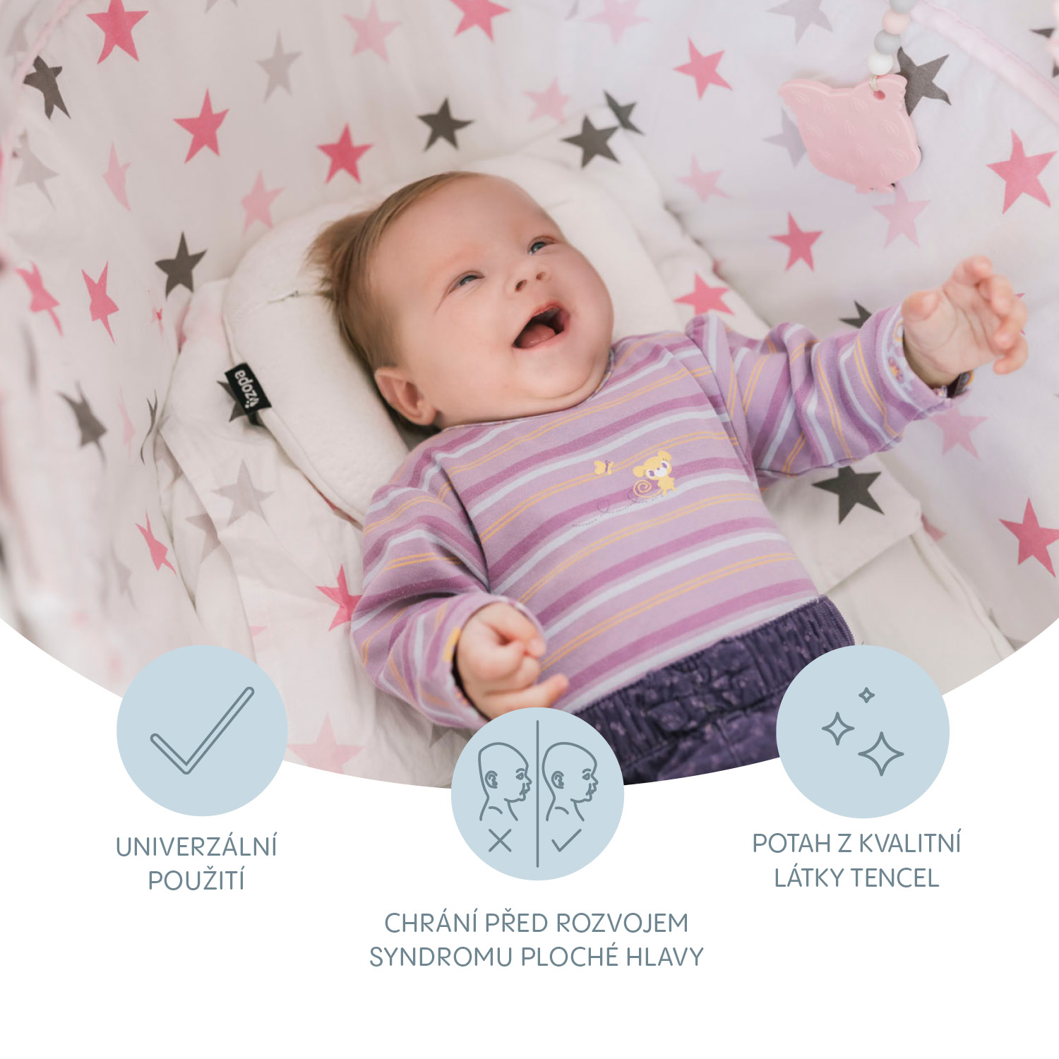 • Chráni pred vznikom syndrómu plochej hlavy