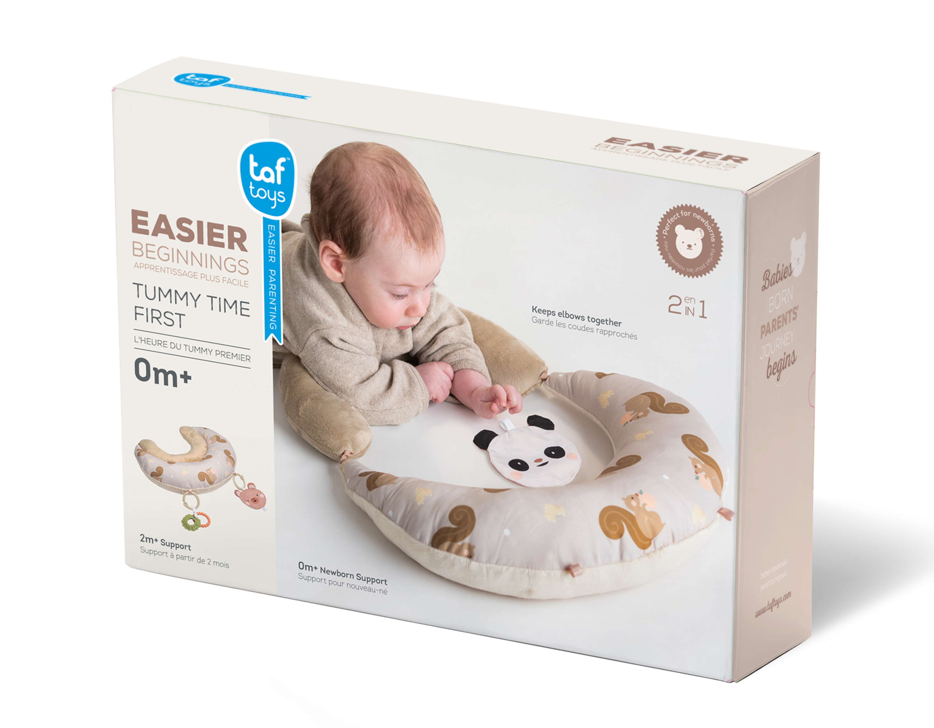Polštářek z měkkého, příjemného materiálu je speciálně navržený, aby podporoval hraní dítěte na bříšku. Pro malého kojence, který tráví většinu dne i noci ležením na zádech, je důležité, aby trávil několikrát denně čas ležením na bříšku a takzvaným “pasením koníčků”. Poloha na bříšku přináší děťátku jiný pohled na svět a posiluje krční a zádové svaly, které později umožňují dítěti začít se přetáčet, lézt a sedět bez opory.