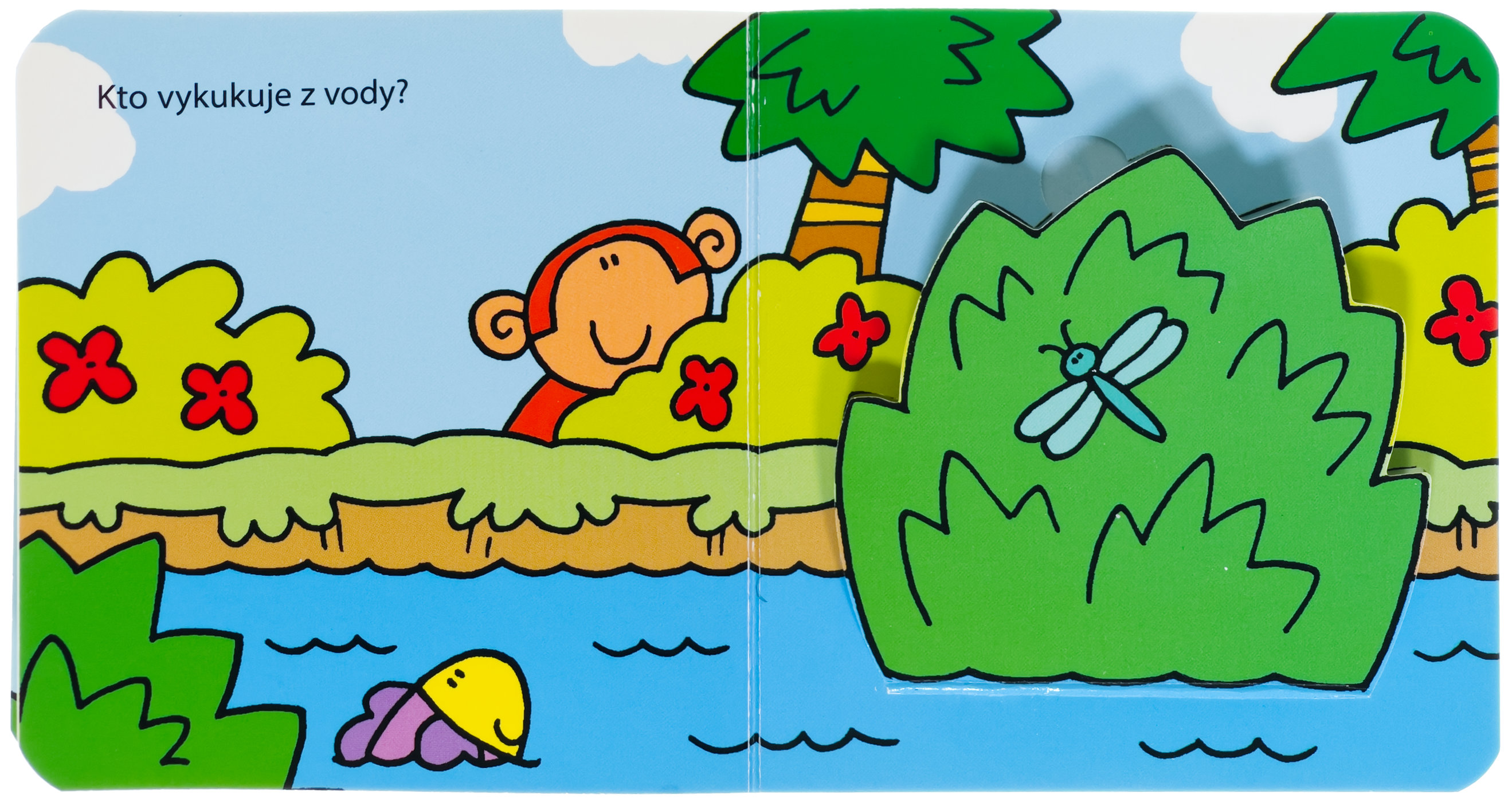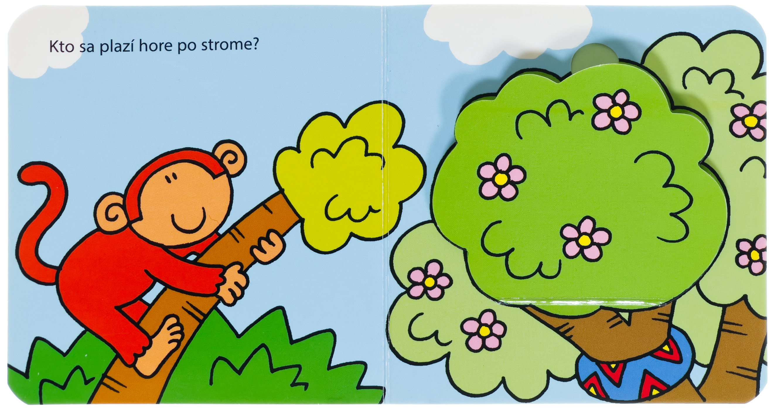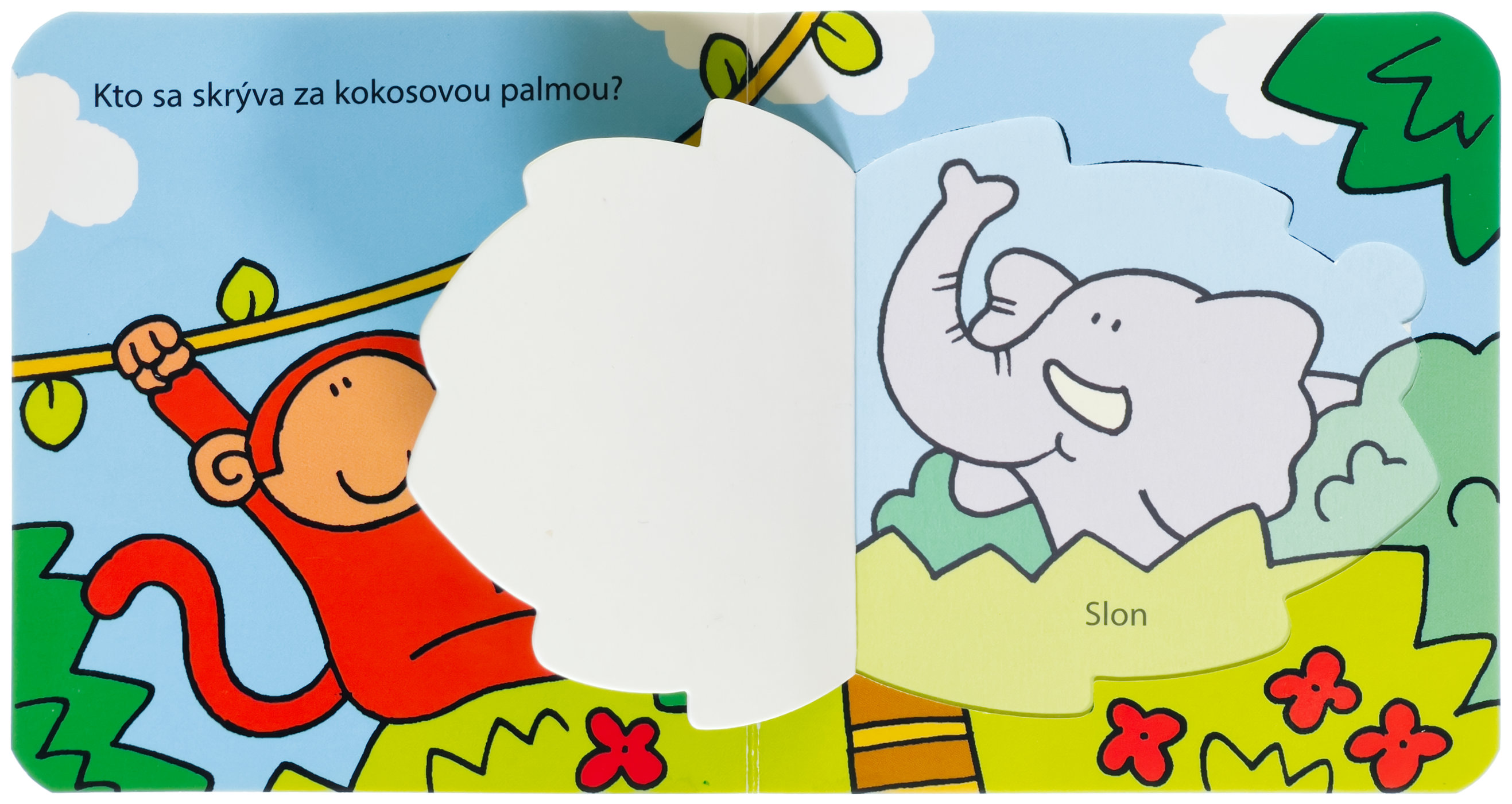 Pozri sa pod okienko a nájdi toho, kto sa tam schováva. Leporelo naučí deti zábavnou formou spoznávať zvieratká, ktoré môžu vidieť v zoo – slona, leva, hada, krokodíla, papagája, gorilu, hrocha, žirafu, zebru i opičku.