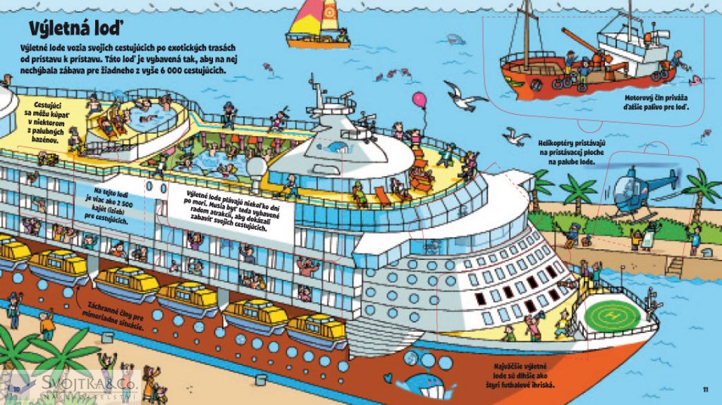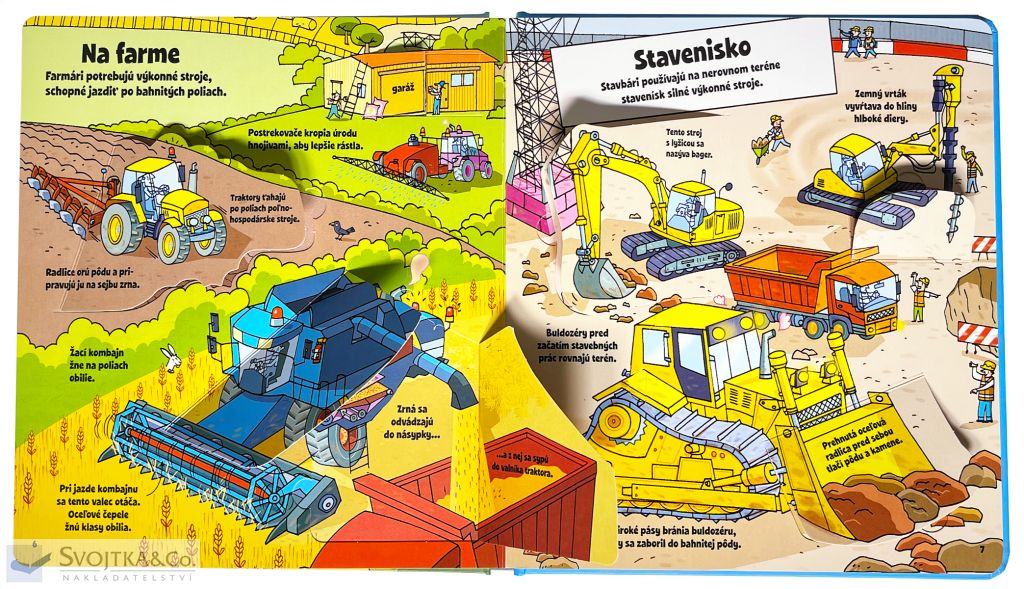 Zoznám sa s vlakmi uháňajúcimi po železničných tratiach, s nákladnými automobilmi prepravujúcimi rôzne náklady, s veľkými prúdovými dopravnými lietadlami prepravujúcimi cestujúcich po celom svete, s farmárskymi strojmi číhajúcimi na poliach, ale aj s pretekárskymi autami, obrovskými výletnými loďami, pohotovostnými vozidlami, ktoré sa ponáhľajú pomôcť ľuďom v núdzi, či so stavebnými strojmi, ktoré používajú stavbári na nerovnom teréne stavenísk. Tak rýchlo nastupovať, ideme!Počet strán: 14